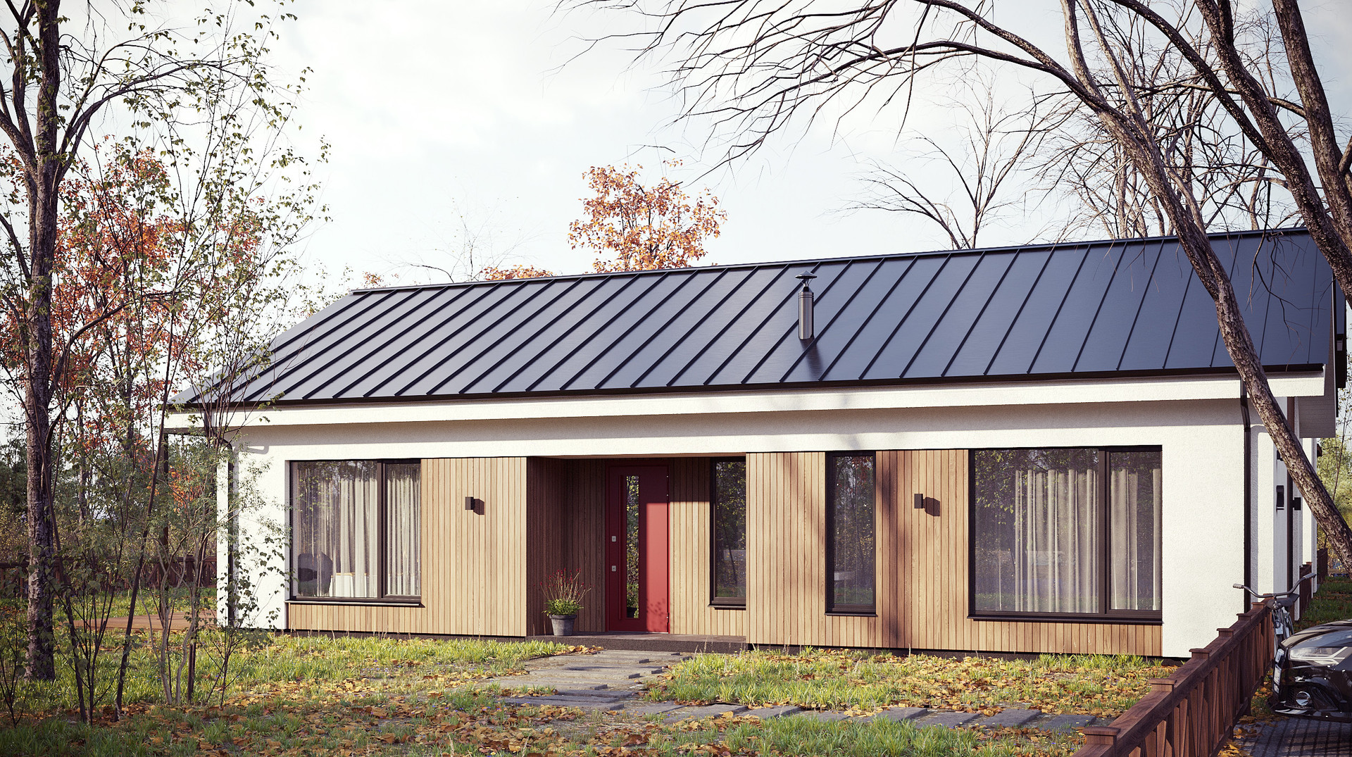 Кровля: двускатная, фальцевые панели