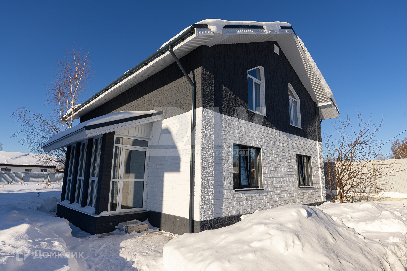 Установлены пластиковые ламинированные окна с двухкамерными стеклопакетами. Во всем доме смонтированы белые матовые натяжные потолки со светильниками. Установлены все розетки и выключатели.