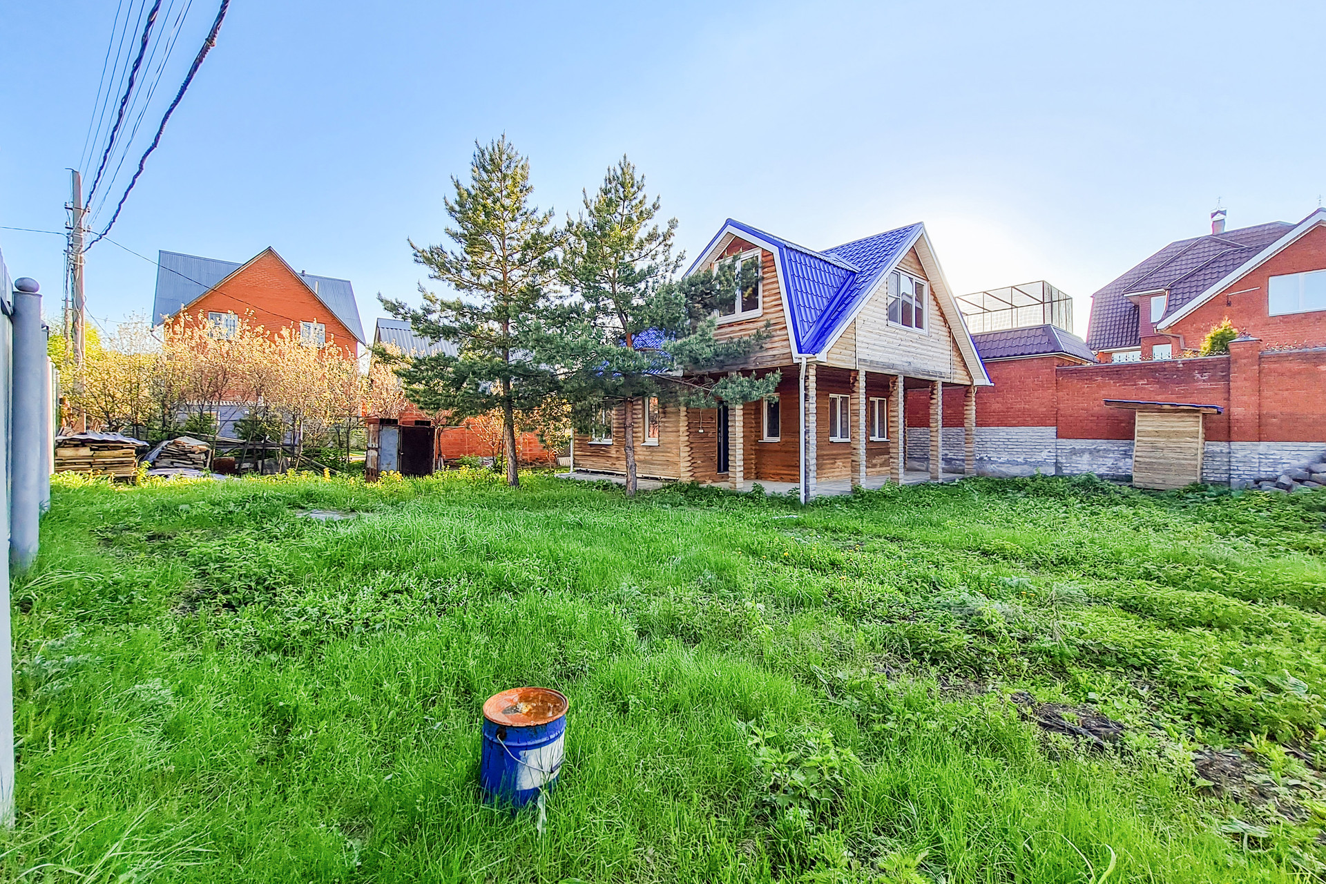 На участке частично высажены плодово-ягодные культуры и сосны.