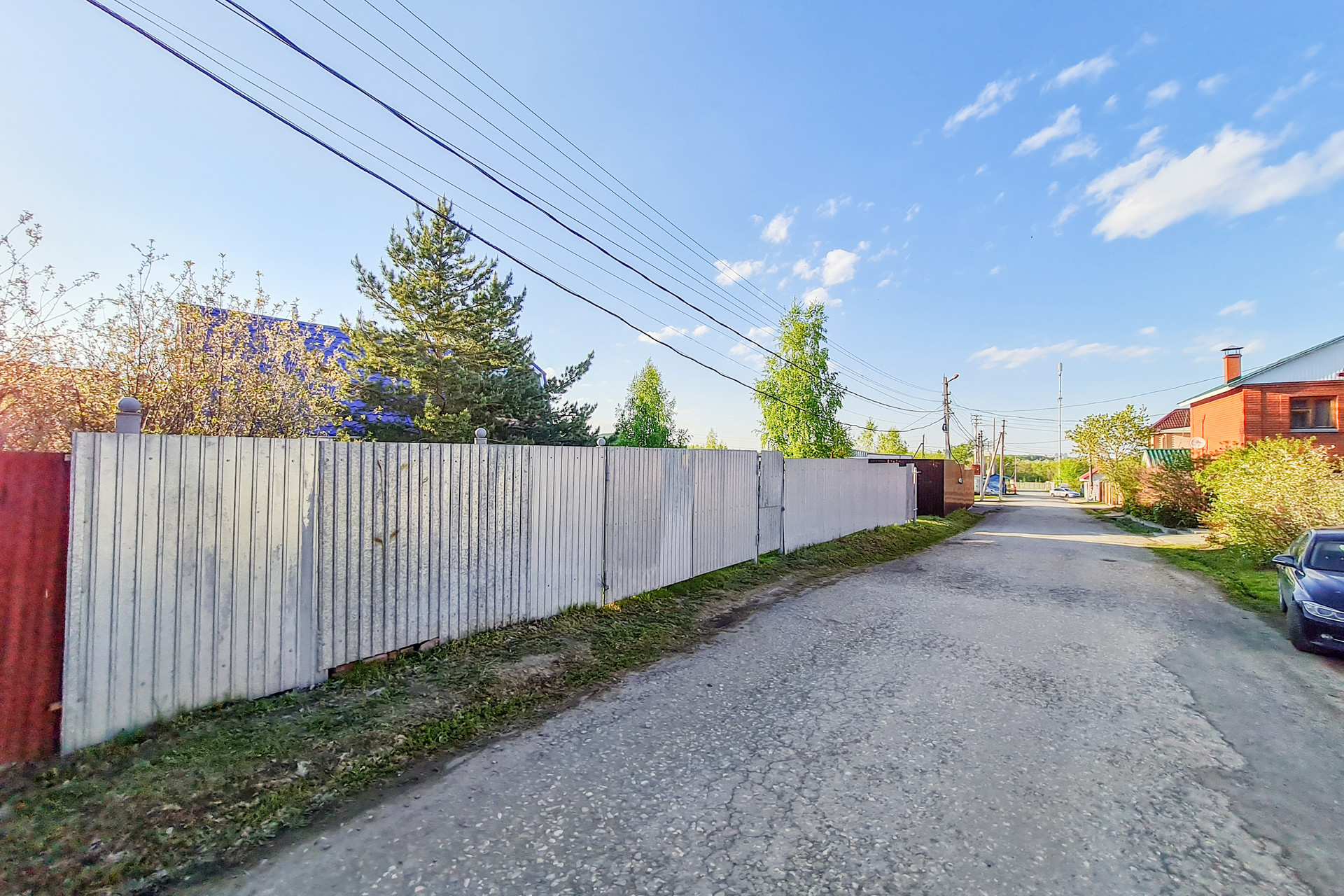 Участок на центральной улице в 100 метрах от основной проходной с охраной. В 50 метрах есть продуктовый магазин. Отличное место для загородной жизни.
