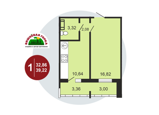 Общая площадь: 39.22 м2
