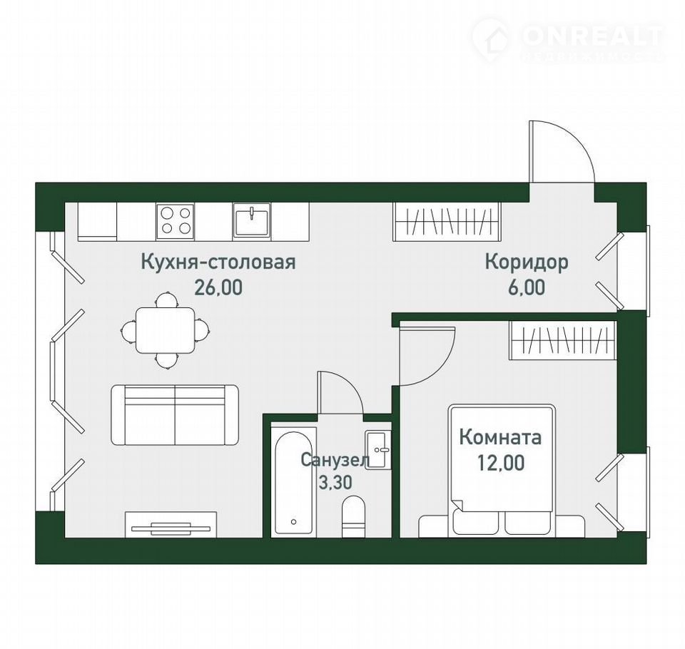Общая площадь 43.5 м2