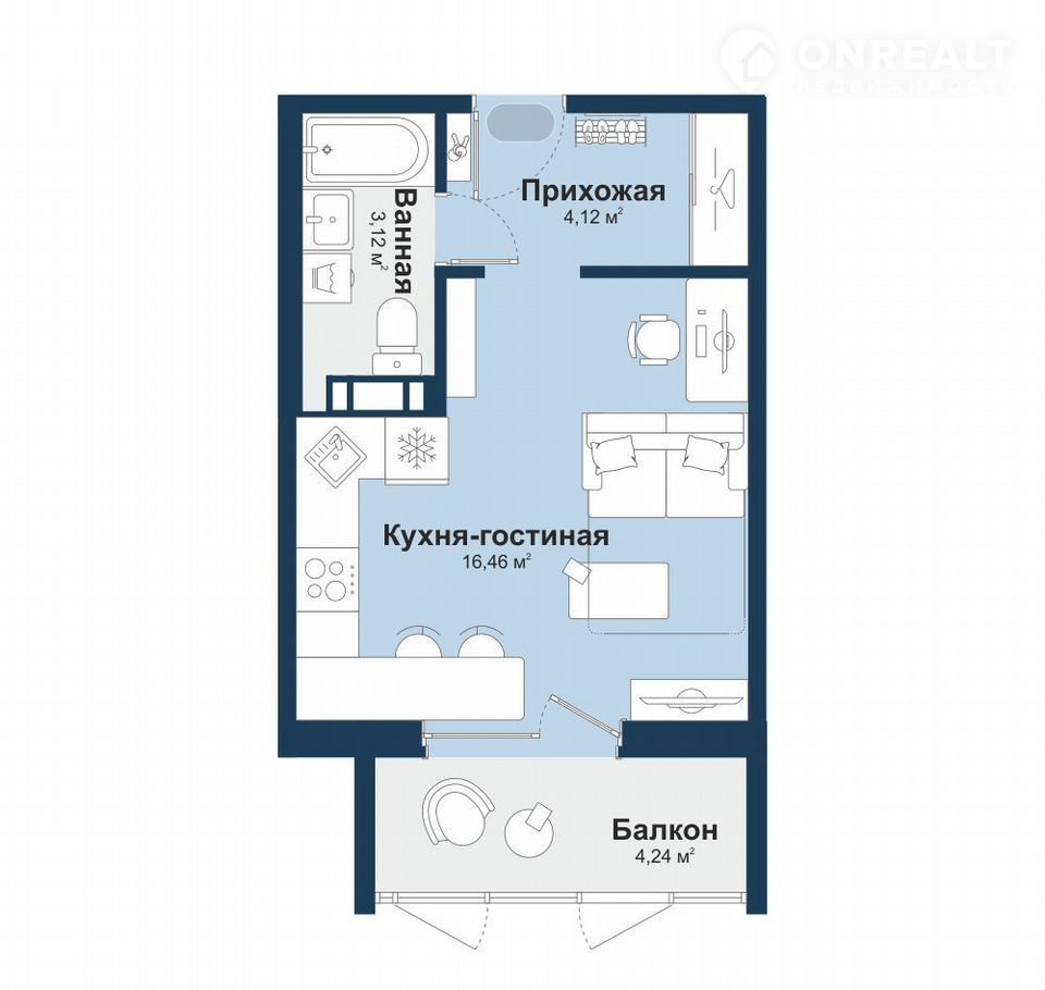 Общая площадь 25.8 м2
