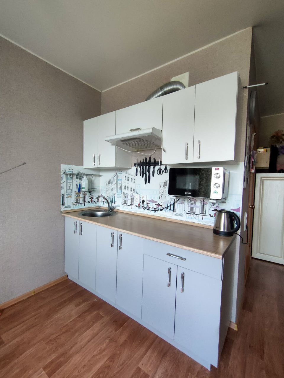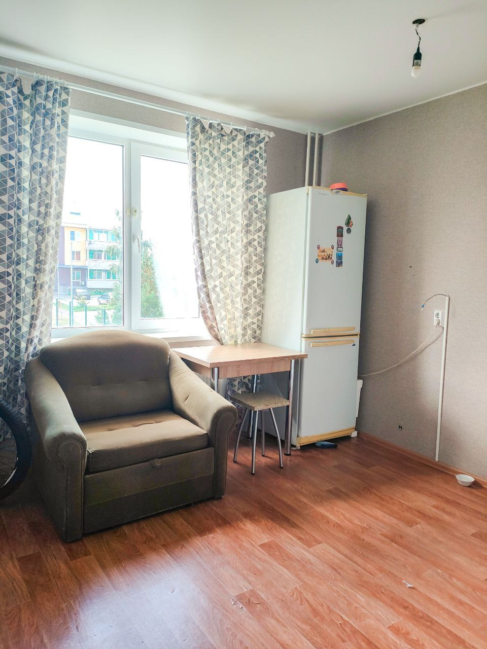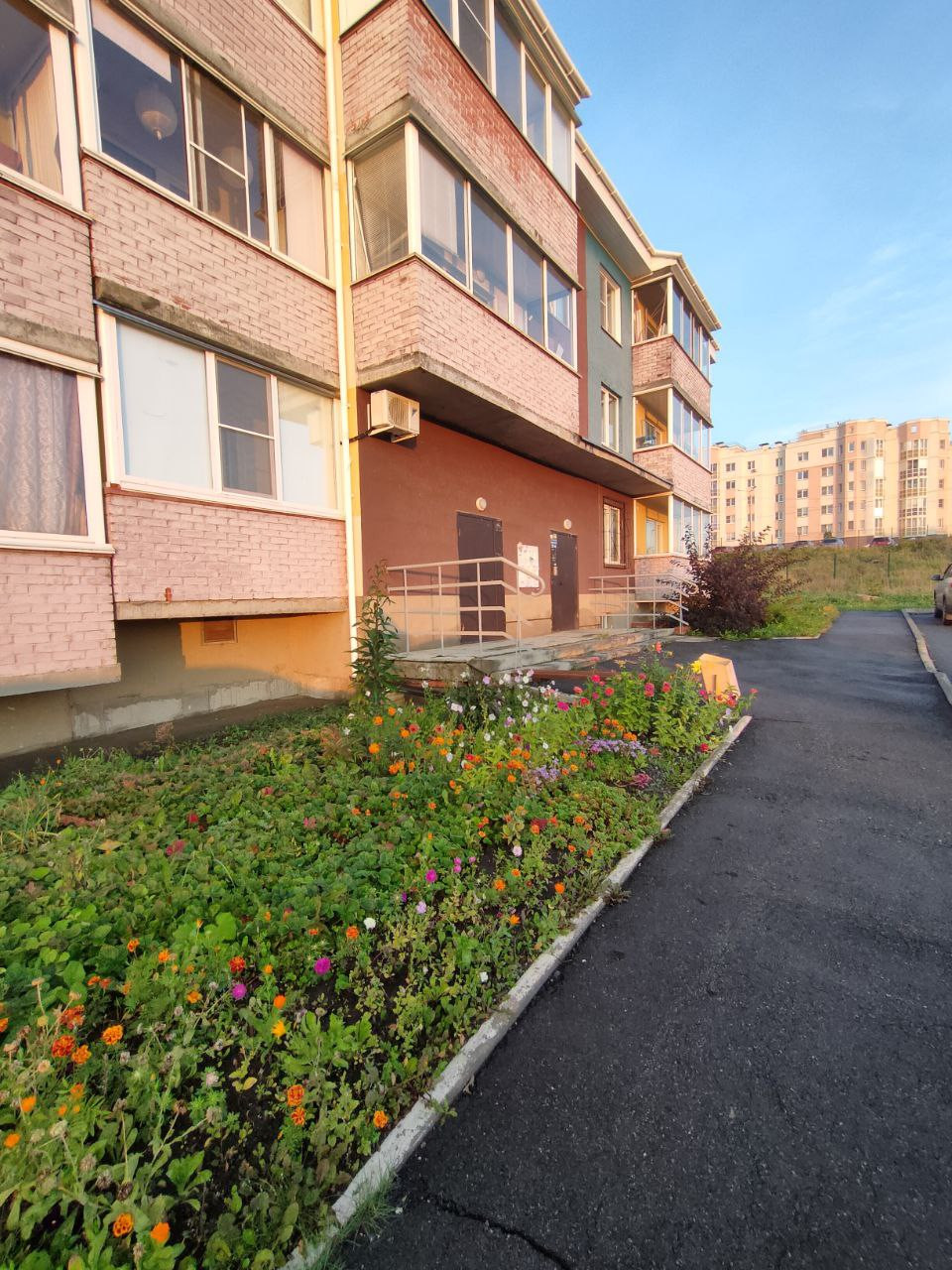 хорошее состояние, натяжные потолки, кафель, новая входная дверь, линолеум, остается кухонный гарнитур, балкон застеклен. Рядом два детских садика, IT- лицей, строится школа напротив дома, строится горнолыжка на берегу напротив дома, транспорт ходит муниципальный хорошо,тихий двор,мало проезжих машин, хорошая управляющая компания, во дворе чисто и убрано , как и в подъезде