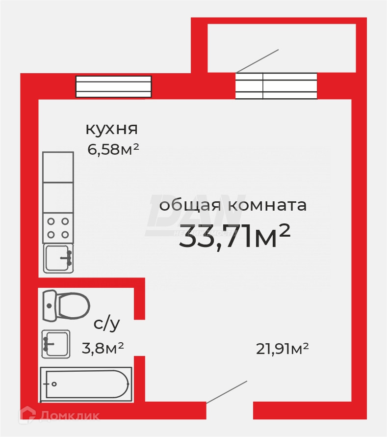 Общая площадь 32.7 м2