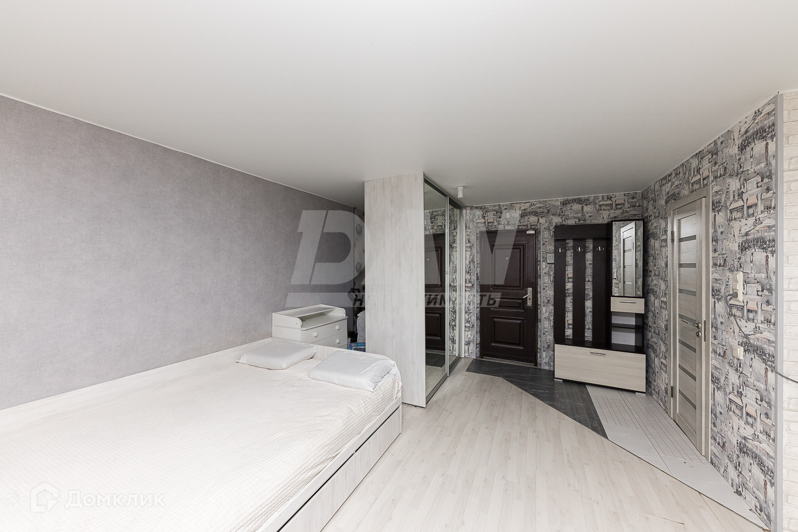В квартире выполнен ремонт: напольное покрытие ламинат, пластиковые окна, флизелиновые обои и натяжные потолки.