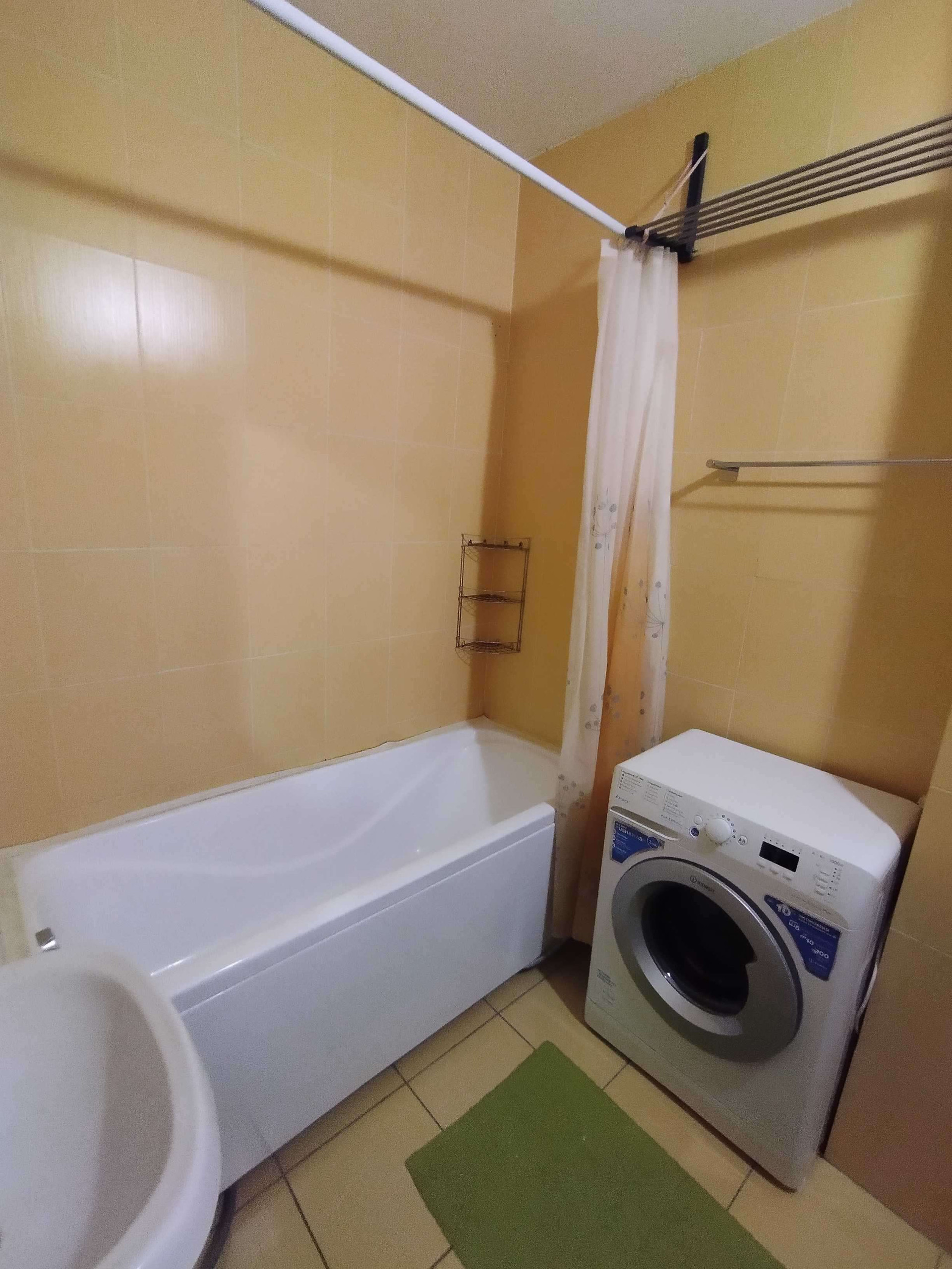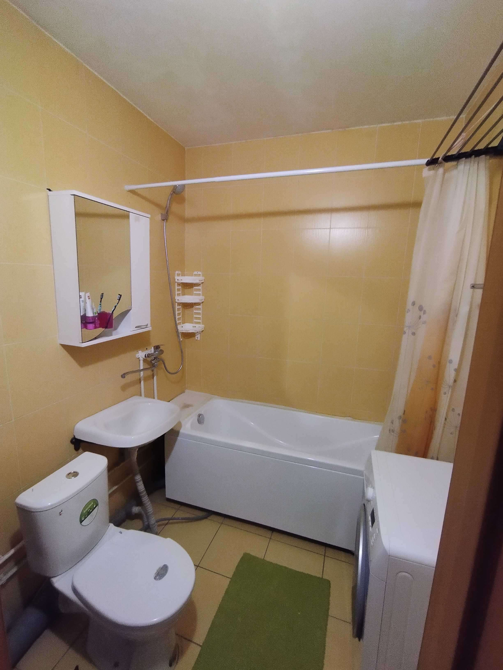 Совмещенный санузел в кафеле: акриловая ванна с усиленным каркасом
