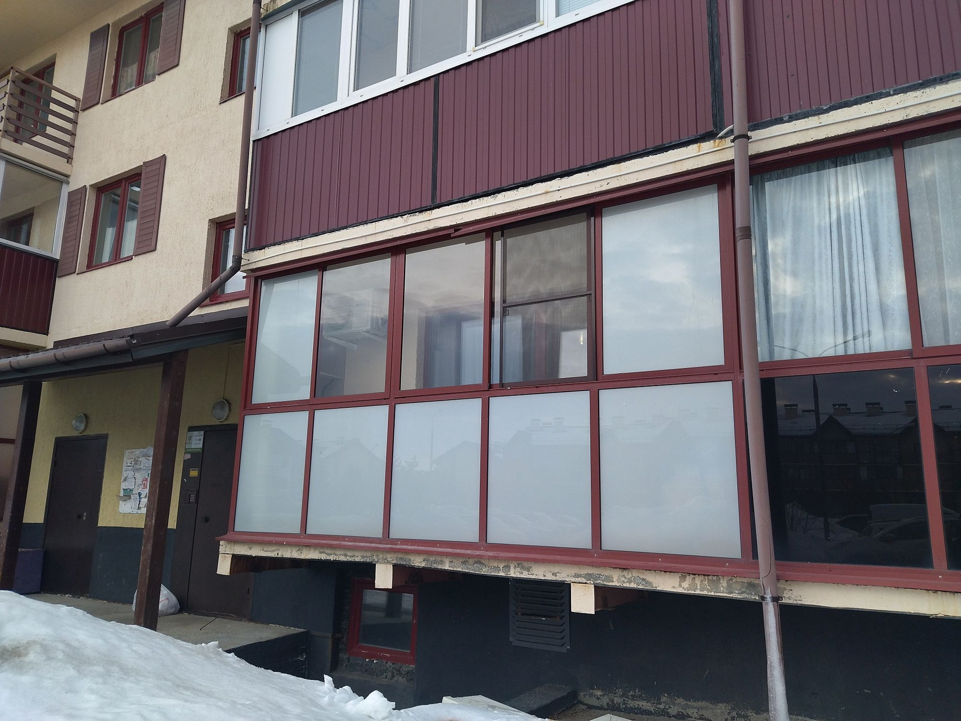 Застекленный балкон с тонированными стёклами (окна выходят во двор).