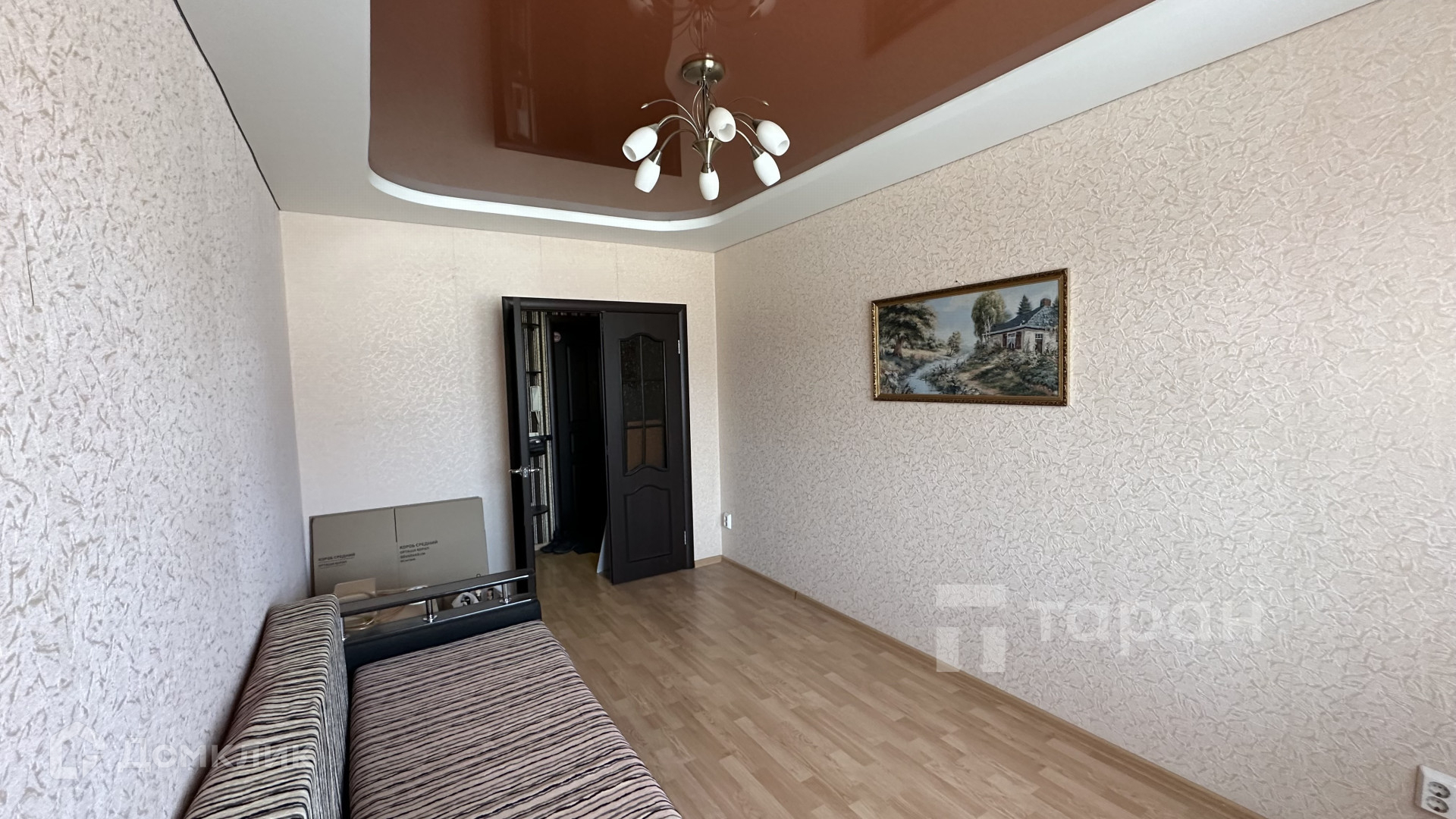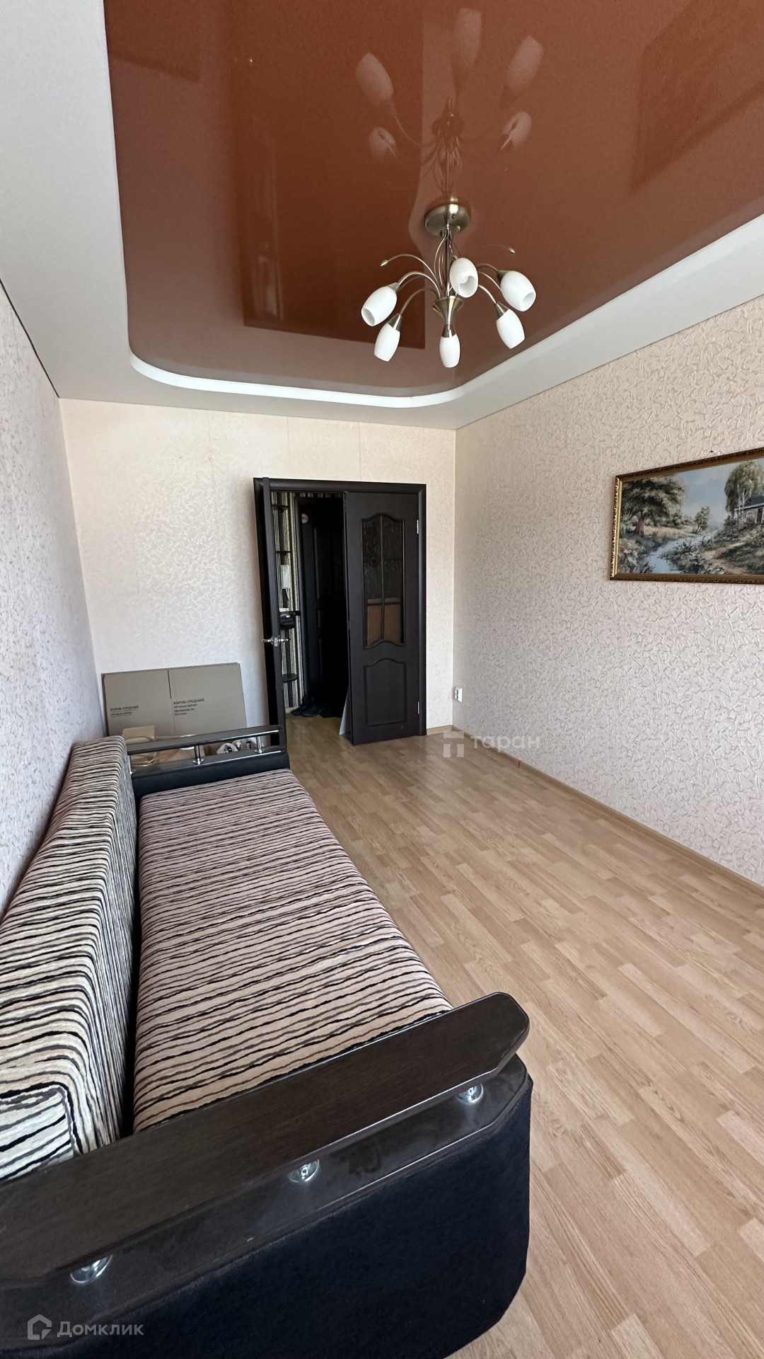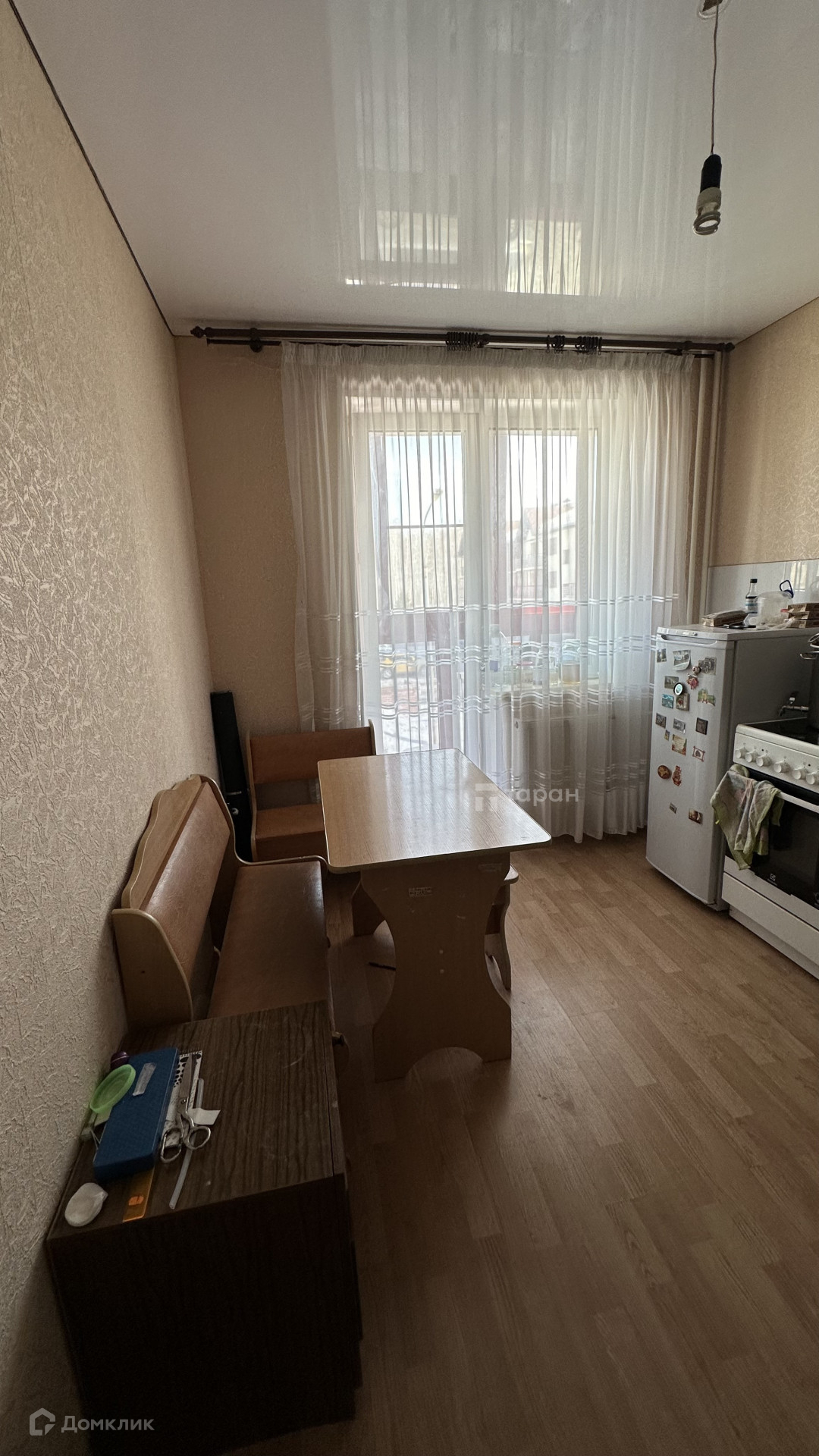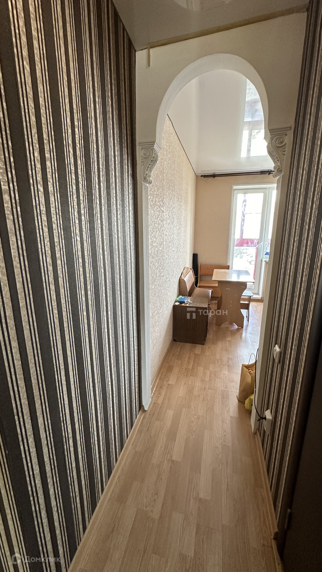 В квартире остается кухонный гарнитур и встроенный шкаф с зеркалами.