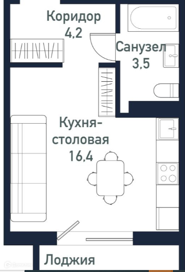 Общая площадь 26.3 м2