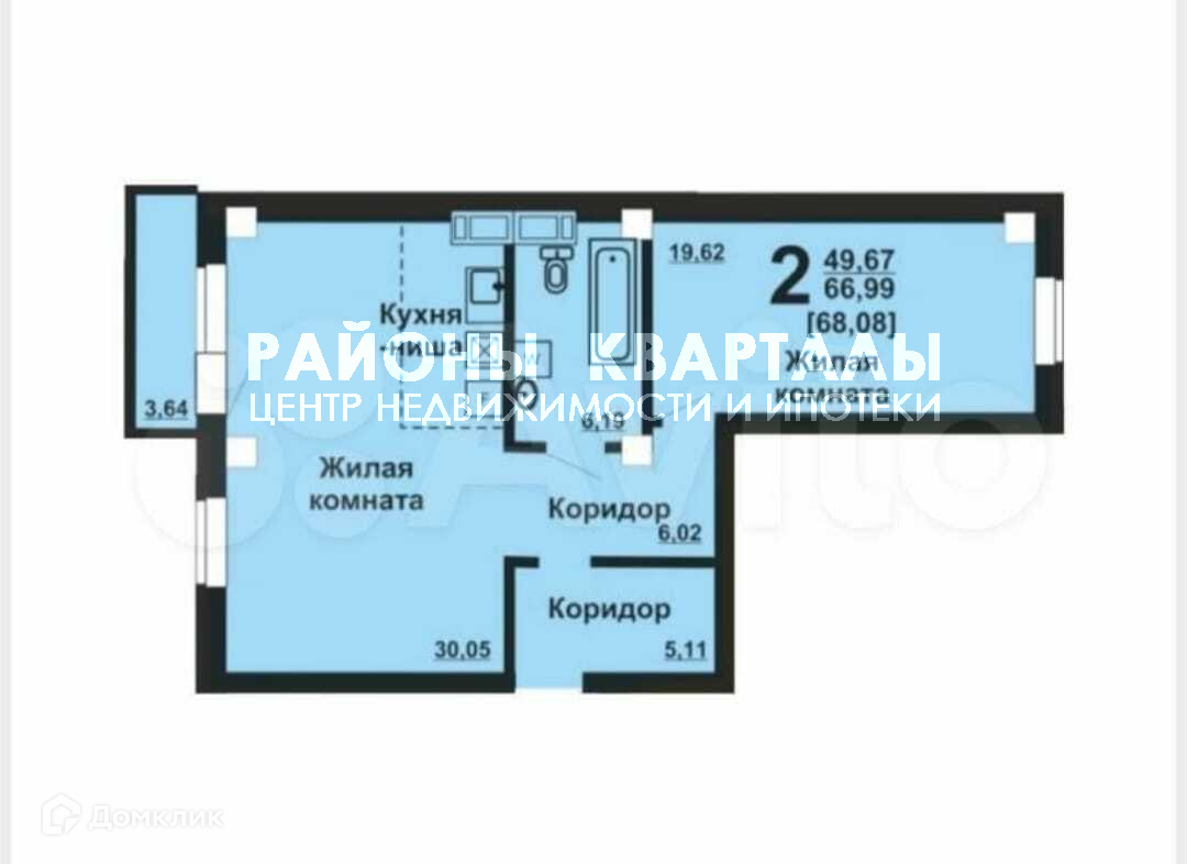 Общая площадь 64.4 м2