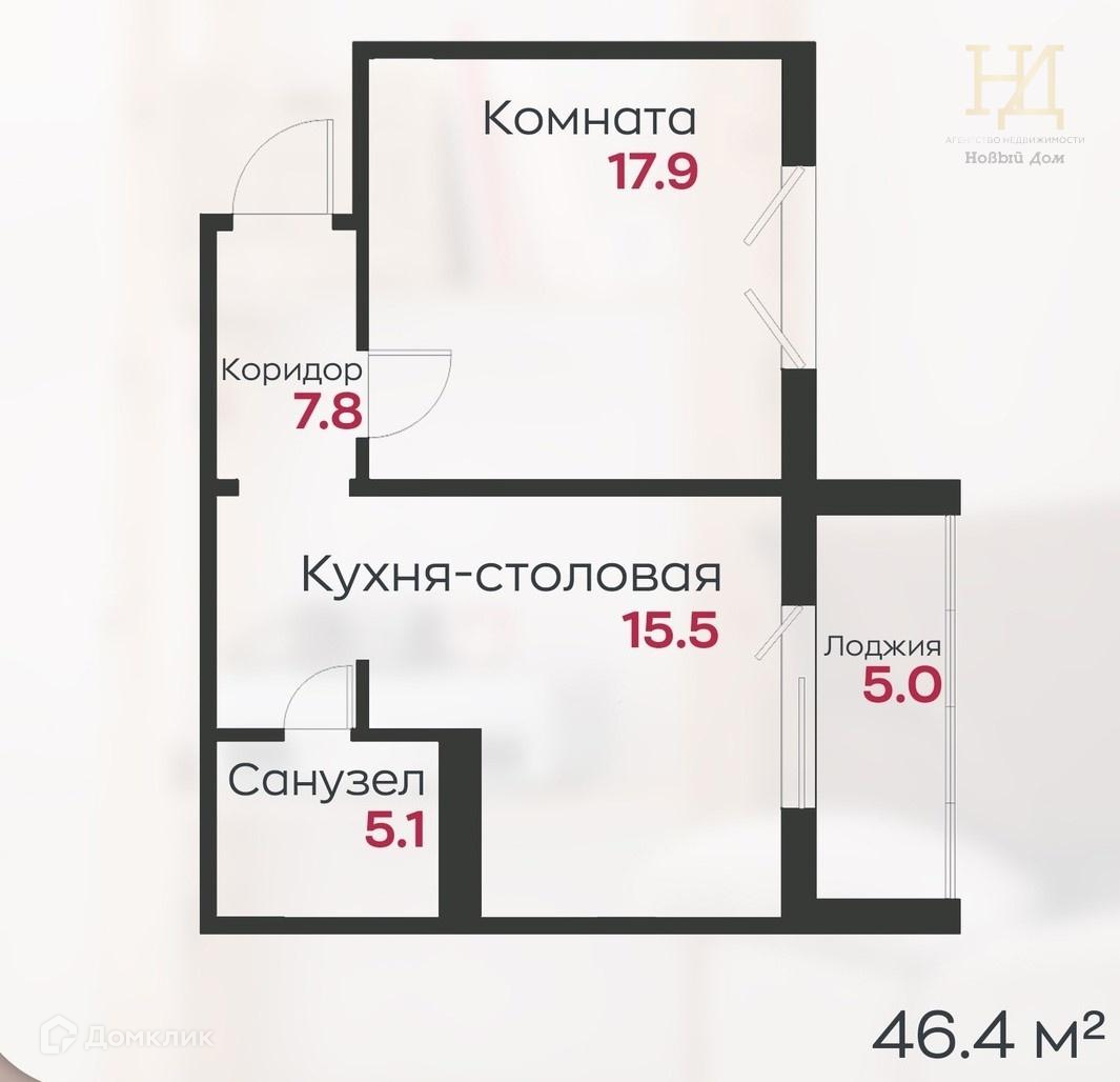 Общая площадь 46.4 м2