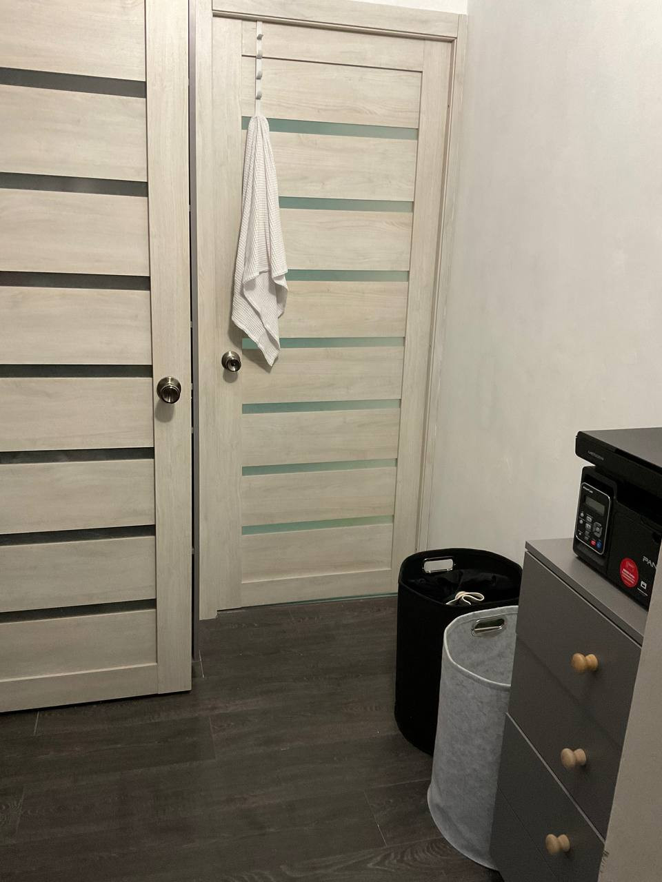 На входе в квартиру есть удобная ниша для хранения верхней одежды, обуви, велосипедов и т.п (в коридоре требуется ремонт). Есть вариант перепланировки, задействовав эту площадь. Второй небольшой коридор около ванны эффективно задействован - здесь есть два стеллажа до потолка и комод для хранения вещей.