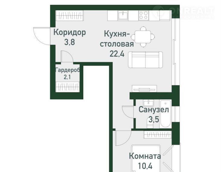 — гостиная с зоной кухни 22,4м2