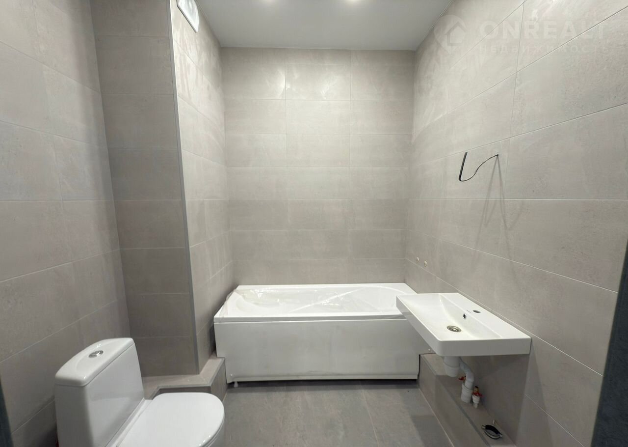 · В Санузлах керамогранит, в светлых тонах на стенах и на полу, установлены акриловая ванна и унитаз