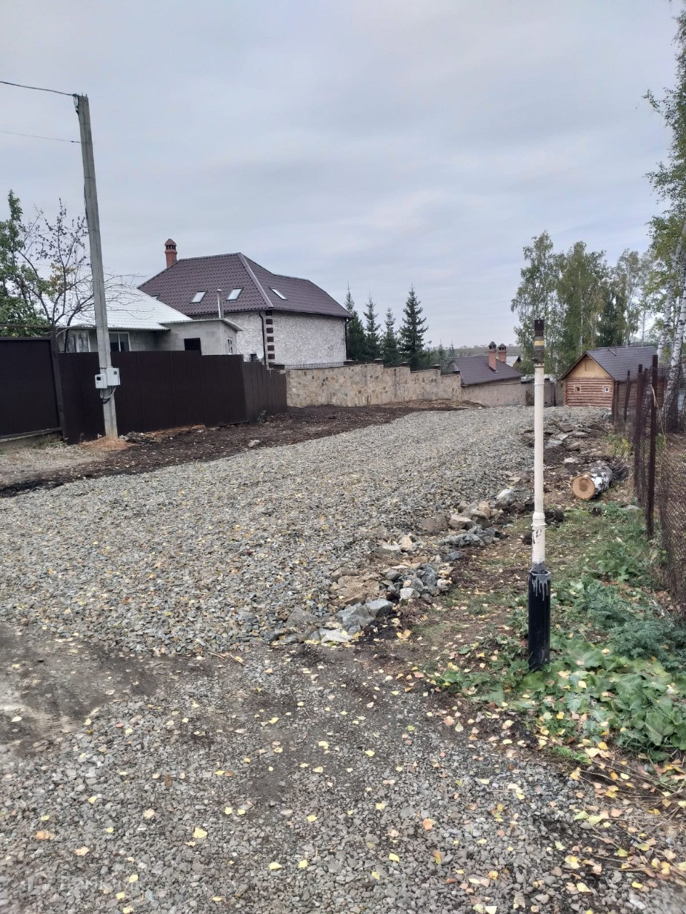 На участке 2 столба с электричеством с одного края и противоположного.