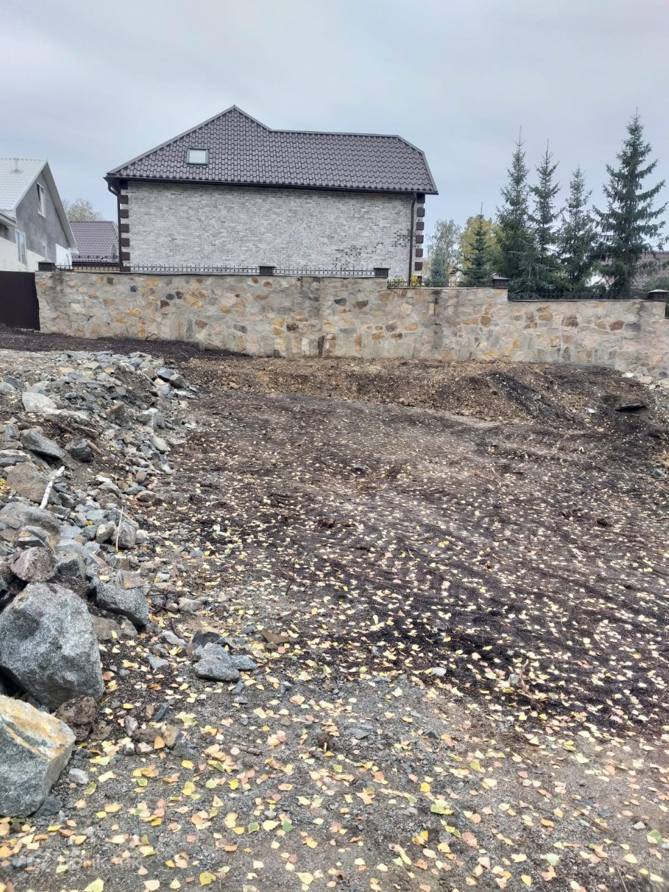 Участок огорожен забором соседей на 70-80% периметра. Заборы стоят ровно по границам, сделана геодезия.