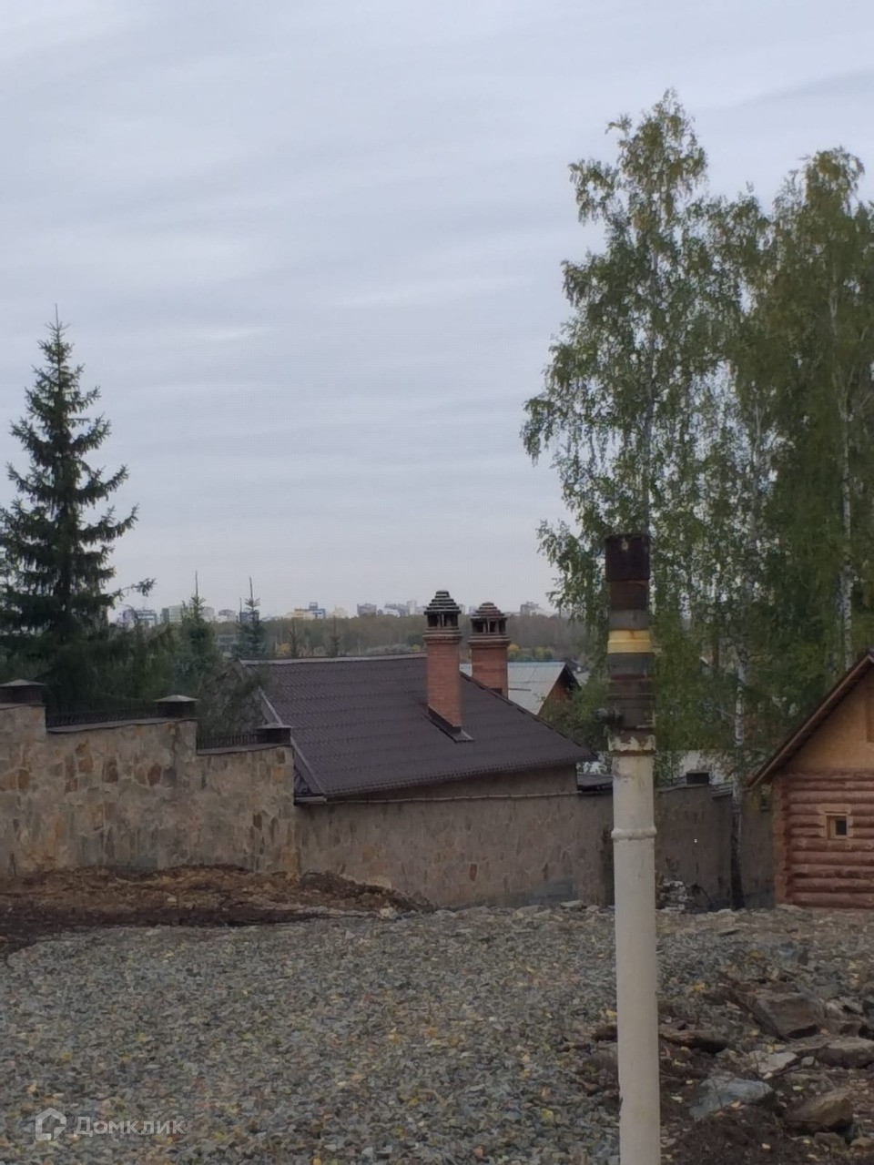 Видно вход в Гольф клуб, он расположен напротив, через лес и участок соседей. По бокам участка красивый лес хвойный и березовый, поют птички.