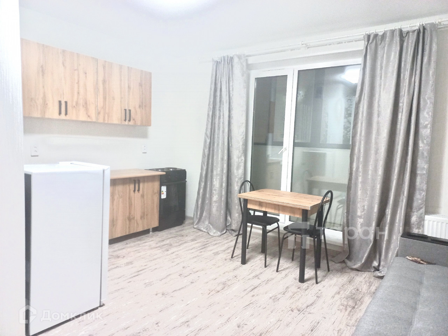 Вся новое, никто не жил. Есть диван-книжка, кухонный стол и стулья, кухонный гарнитур, холодильник.