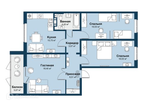 Отличная квартира для большой семьи! Комната 18м.кв с выходом на лоджию, просторная кухня 15.7м.кв. две спальни на разные стороны по 16.5м.кв., санузел совмещенный.