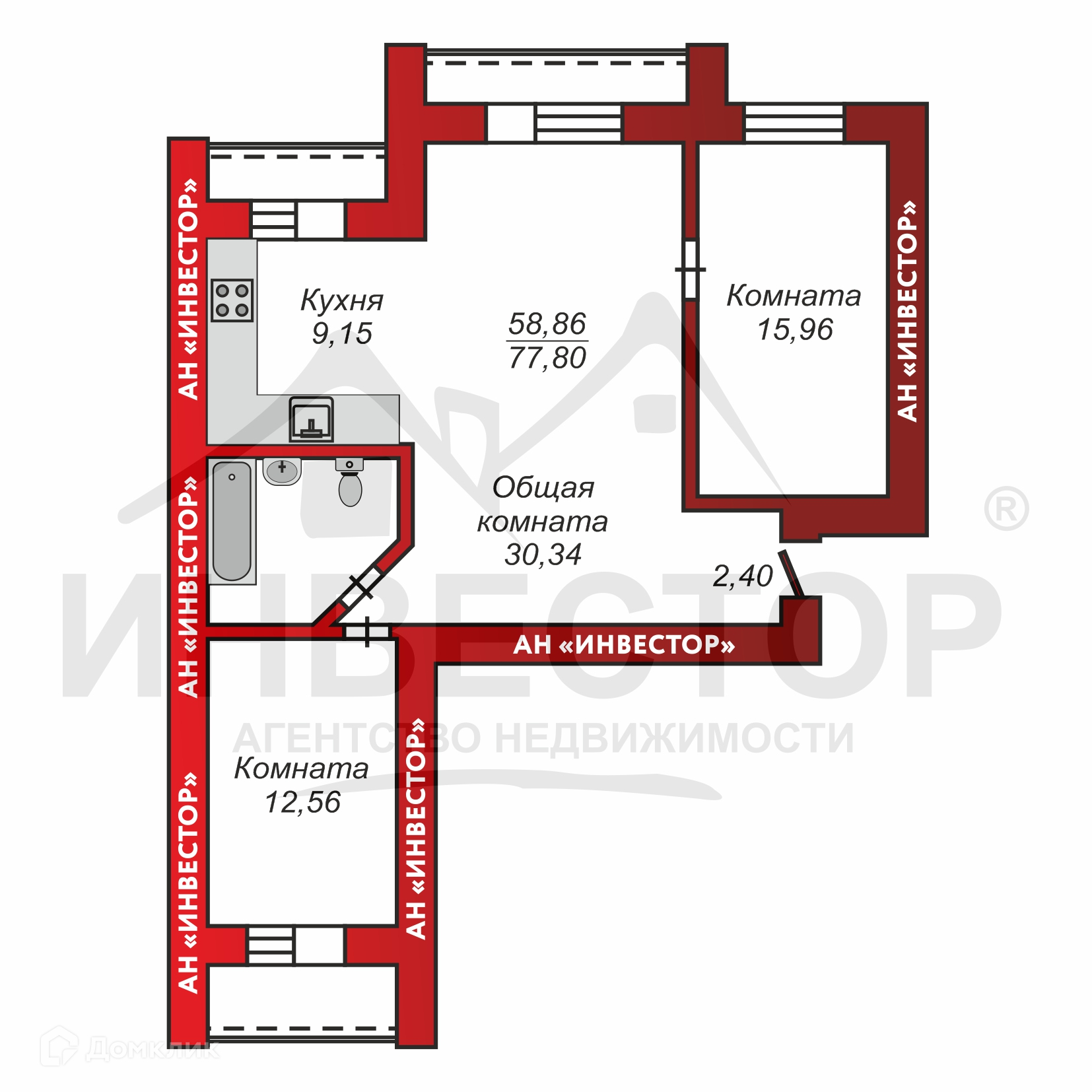 Общая площадь 77 м2