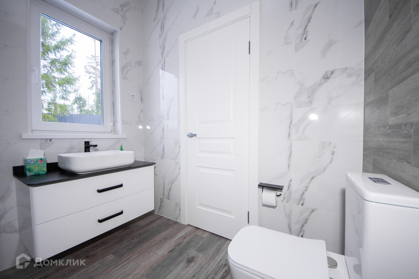 Сделан ремонт под ключ: полы керамогранит, стены в санузле керамическая плитка. Стены и потолок обшиты имитацией бруса.