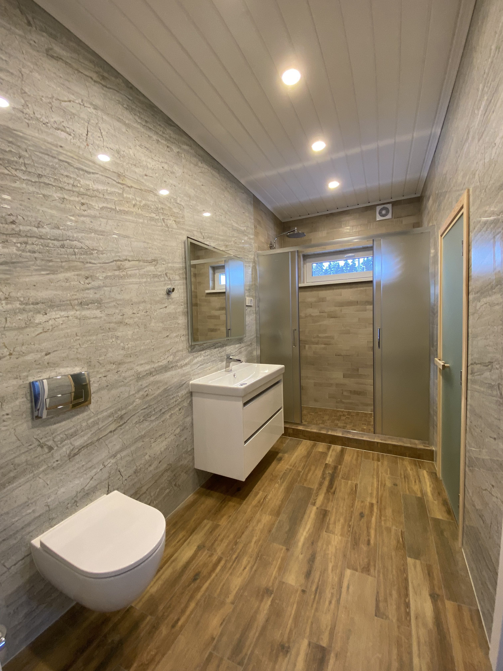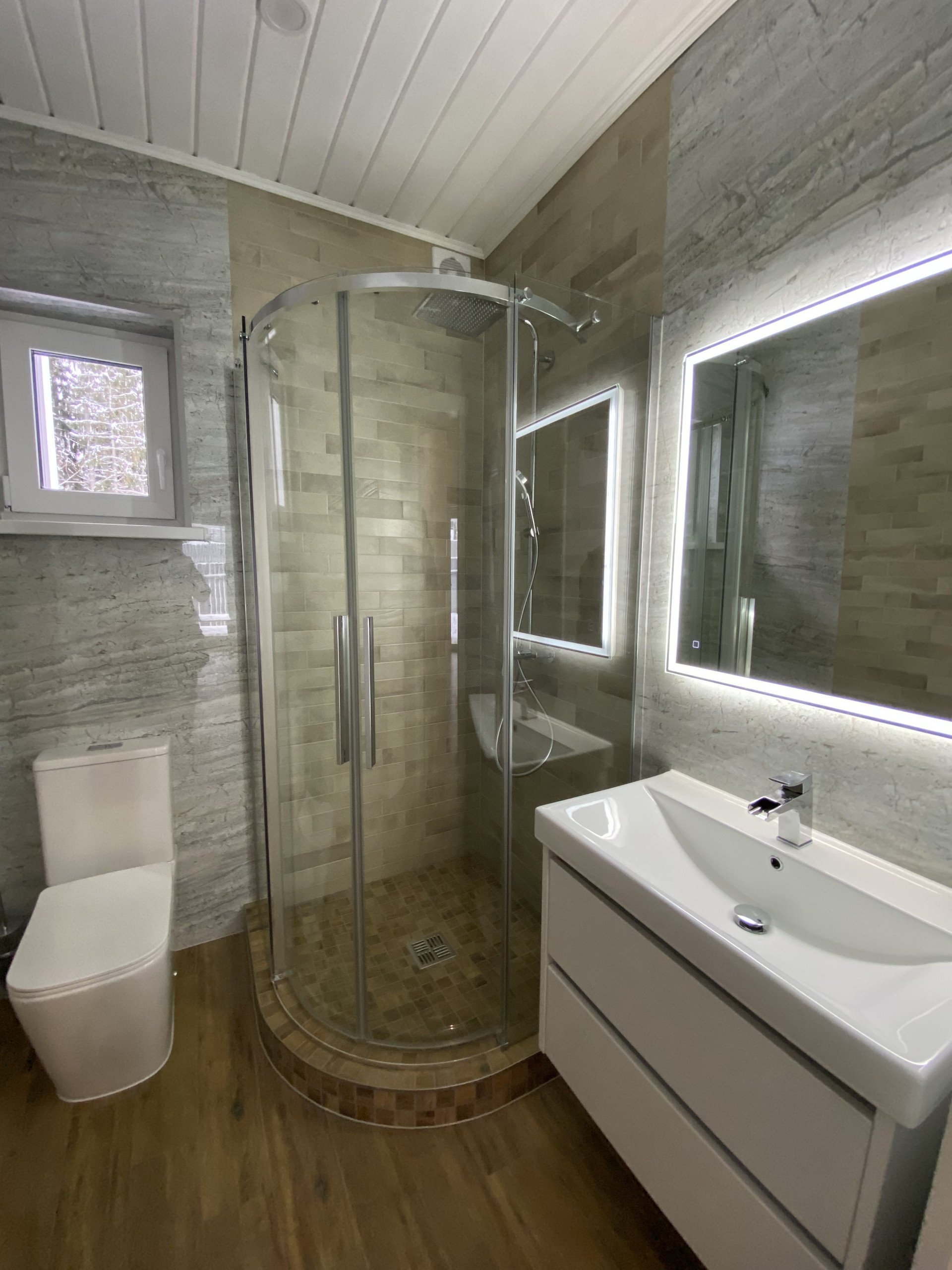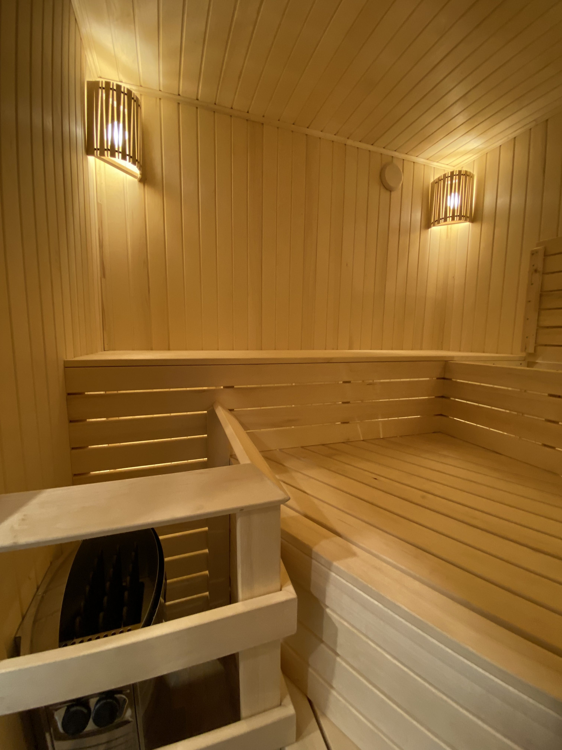 ✅ В каждом доме оборудована сухая финская сауна вместимостью до 4-х человек с электрокаменкой HARVIA.