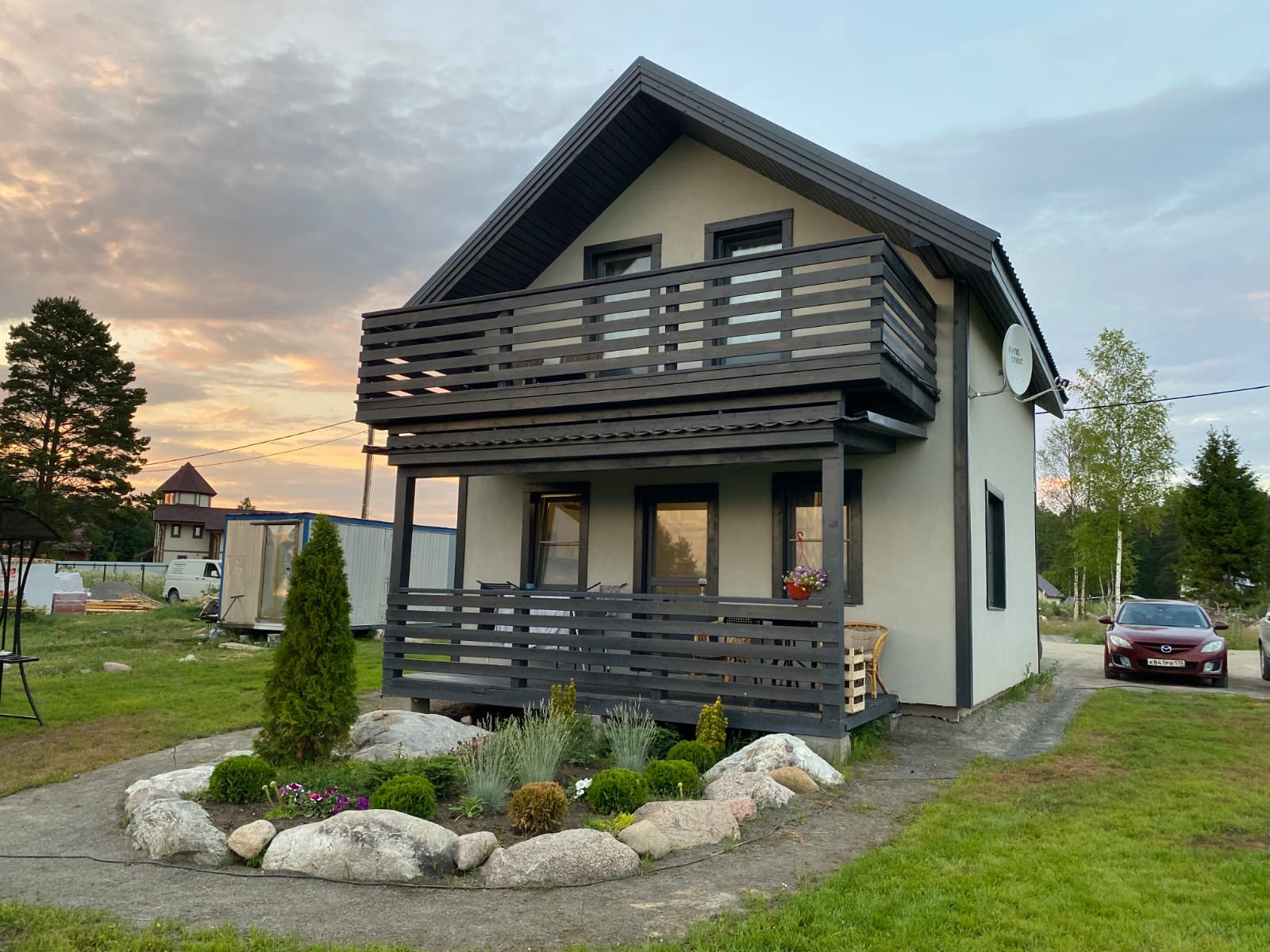 Продается участок 10 соток, ИЖС, ровный, сухой. На участке 2-х этажный жилой дом, общей площадью 95.7 кв.м. Дом каркасный, утеплен 250 Rockwool, отделка внутри- имитация бруса Фундамент - заливная плита, кровля - металлочерепица, электричество 15 кВт, газ-подключение в июле, отопление- водяные полы во всем доме, вода- скважина, канализация локальная -септик. Вдоль участка проходит газ. В доме выполнен качественный ремонт, на первом этаже кухня-гостиная, на втором - 2 спальни. Остается вся мебель и  техника. Жилой дом пригоден для постоянного проживания, так и для сдачи в аренду. Территория поселка огорожена, в 1 км река Бурная, в 3 км Ладожское озеро с великолепным песчаным пляжем. Рядом сосновый лес.  Возможна ипотека.