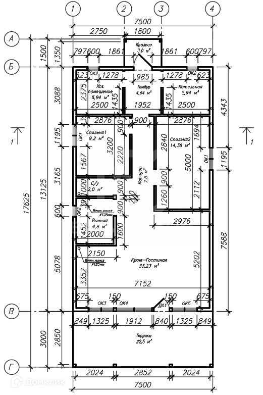 Общая площадь 113.3 м2
