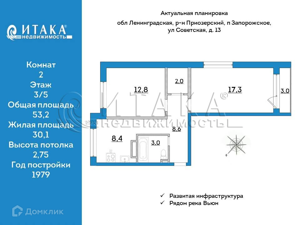 *** Полностью благоустроенная квартира 53,2 кв.м (без учета лоджии 3 кв.м.) на 3 этаже с новым капитальным ремонтом.