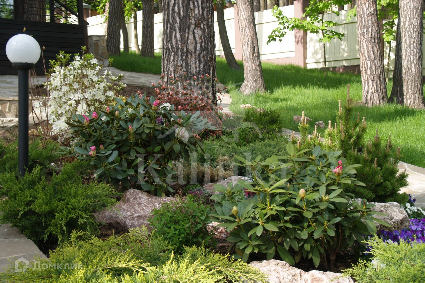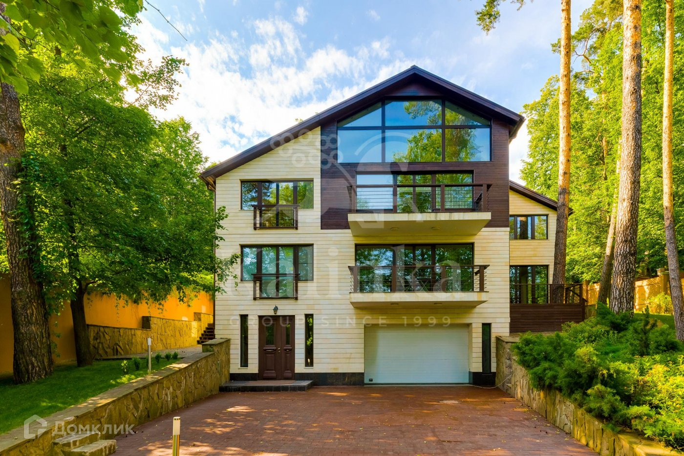 Красивый участок со склоном, газон, лесные деревья. Есть гараж на 2 м/м и парковка на 4 автомобиля. Дом расположен напротив парковой зоны с великолепными видовыми характеристиками.
