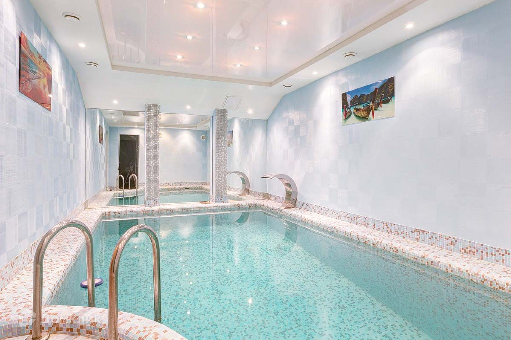 Цоколь:сауна, душевая, комната отдыха, бассейн с противотоком и водопадом, душ, техническое помещение; Первый этаж: холл, гардеробная, постирочная(оборудованная), каминный зал, гостиная, спальня, спортивный зал, гостевая с балконом;