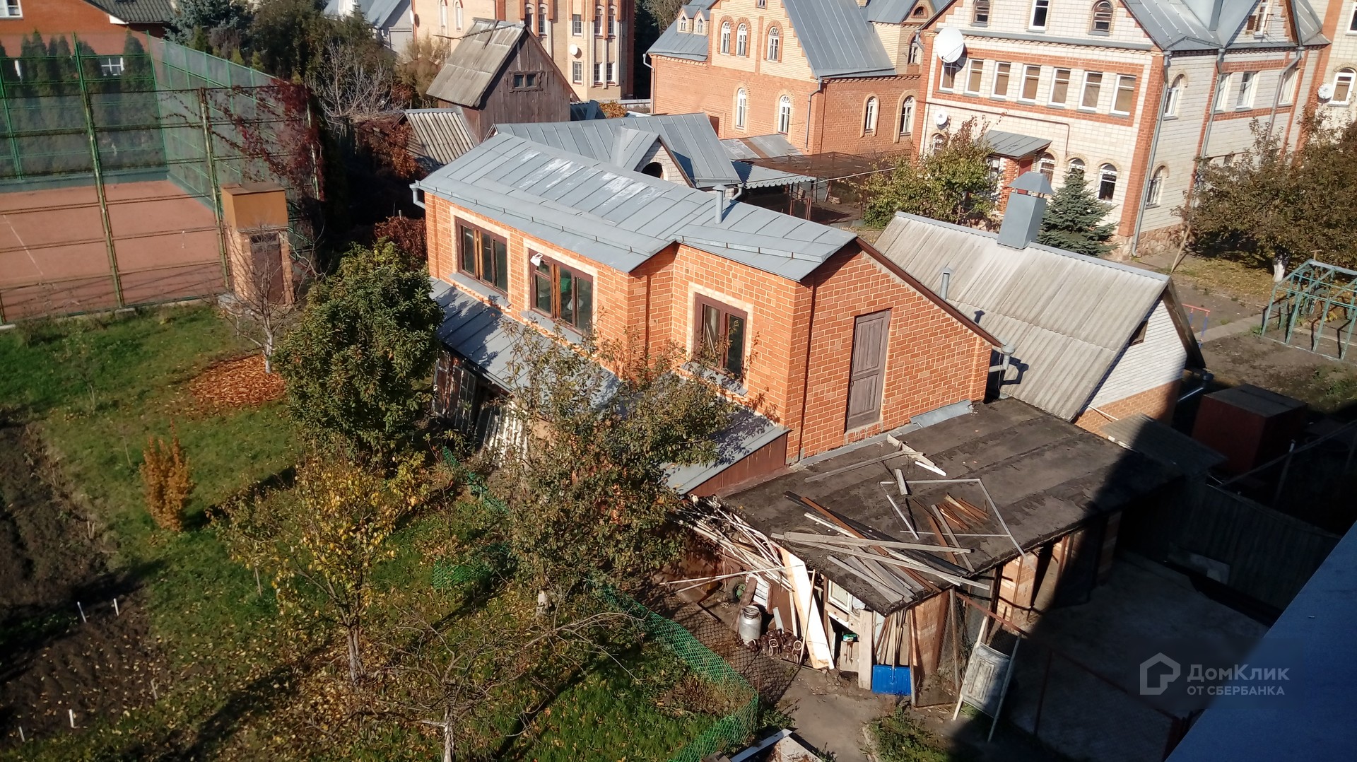 Дом построен из облицовочного кирпича. Общая площадь: 444,2 кв.м., жилая-220 кв.м. Фундамент бетонный, кровля-керамическая черепица.