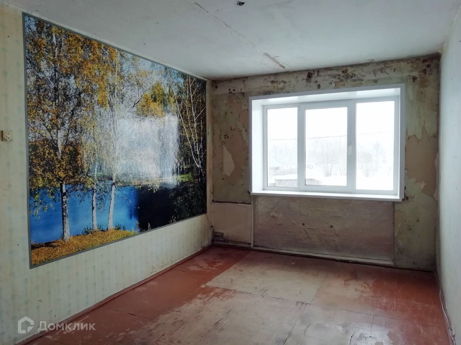 Квартира требует ремонта. В комнате установлено новое пластиковое окно, на кухне - рама деревянная. С/уз совмещенный, балкона нет.