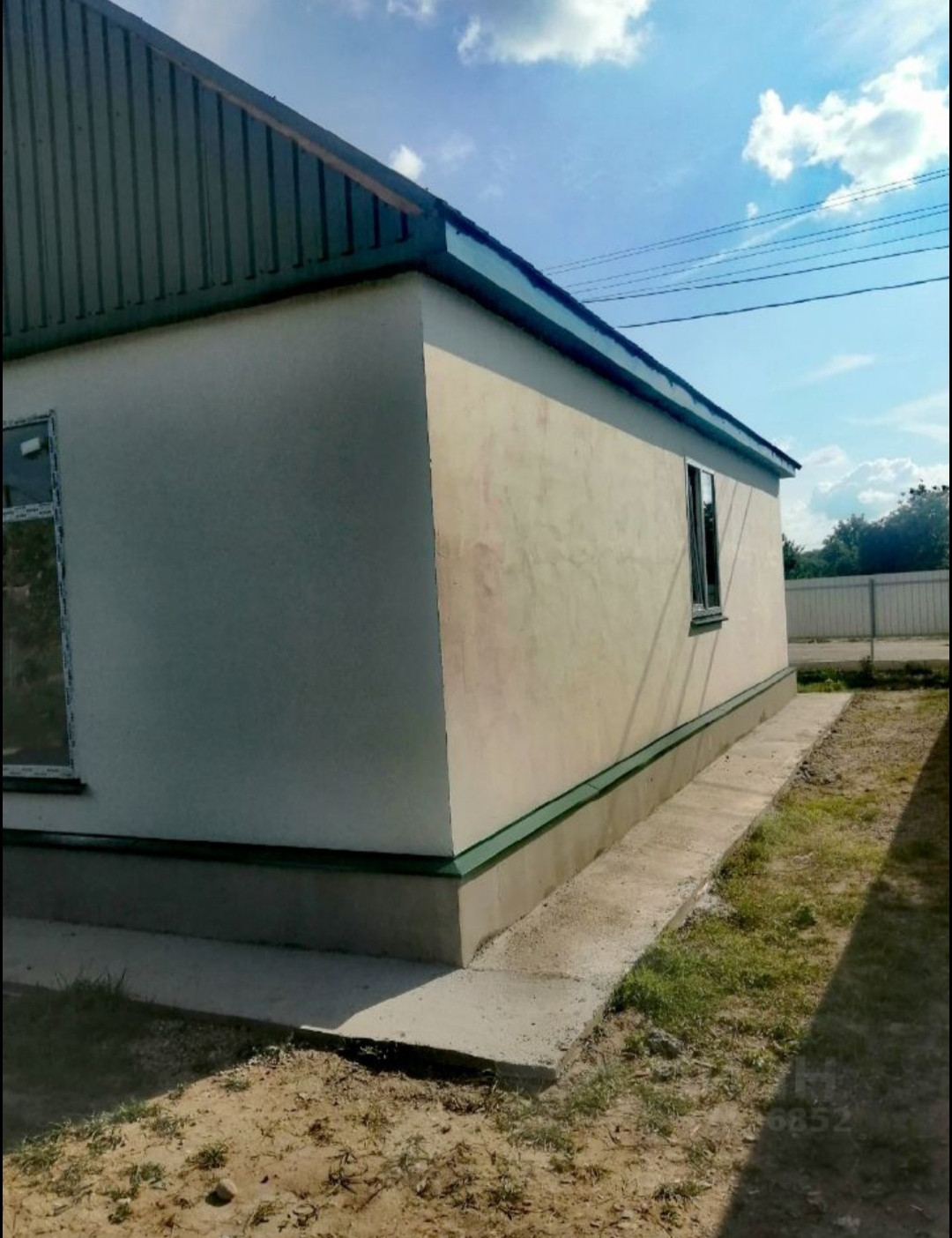 Двор забетонирован, забор из профнастила, калитка, откатные ворота, навес перед входом в дом.
