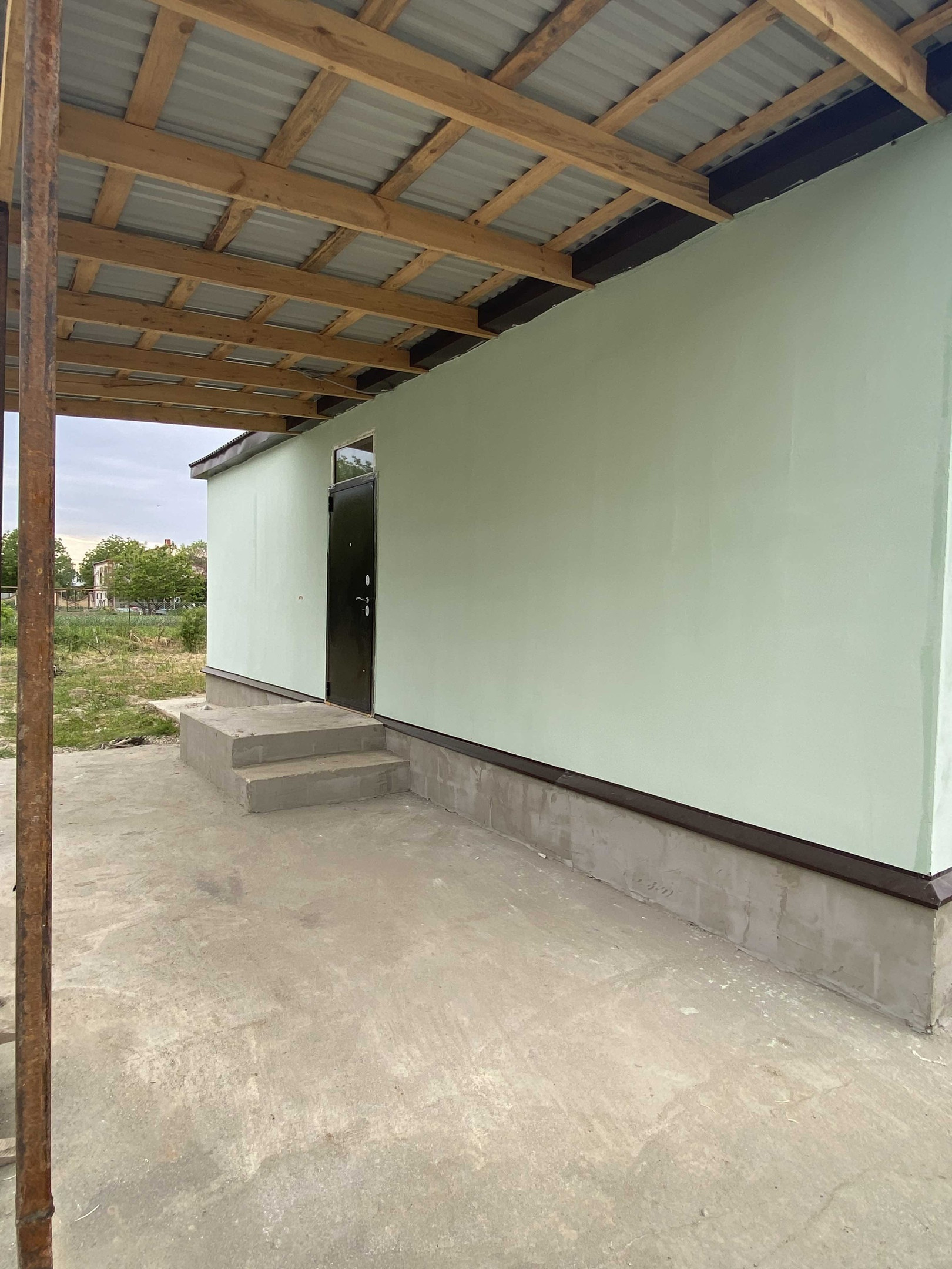 Есть навес , двор забетонирован.