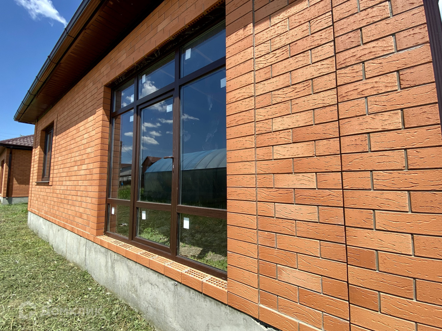 Дом построен из блока, утеплен, облицован кирпичом.
