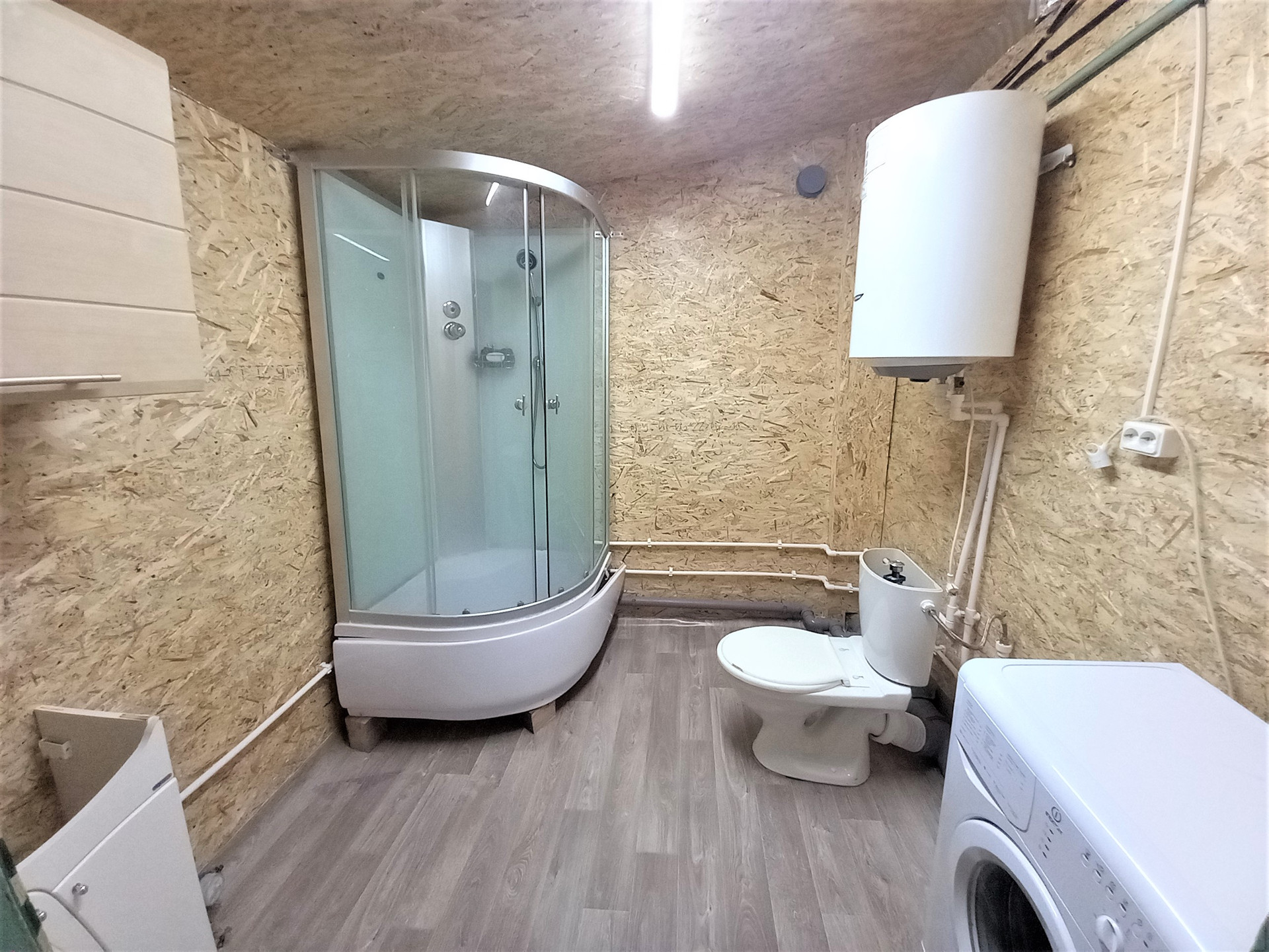 Дом прошел хорошее обслуживание: во всем доме полностью заменили трубы по водоснабжению и канализационные трубы, частично заменена электропроводка, установлен бойлер на 80 литров воды.