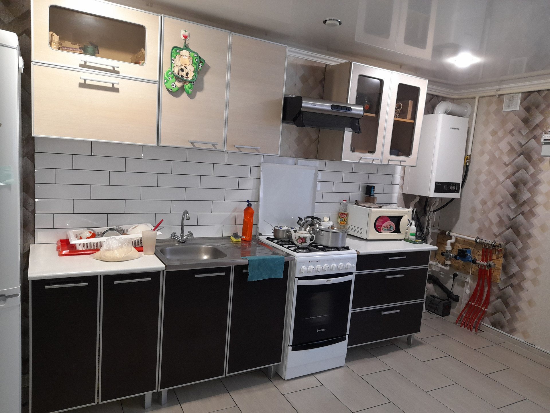 В доме выполнен хороший ремонт: пластиковые окна во всем доме, натяжные потолки, теплые полы,сан. узел в кафеле, забор из проф.листа. Коммуникация: вода центральная, своя скважина, сливная яма, отопление через котел, горячая вода через водонагреватель.