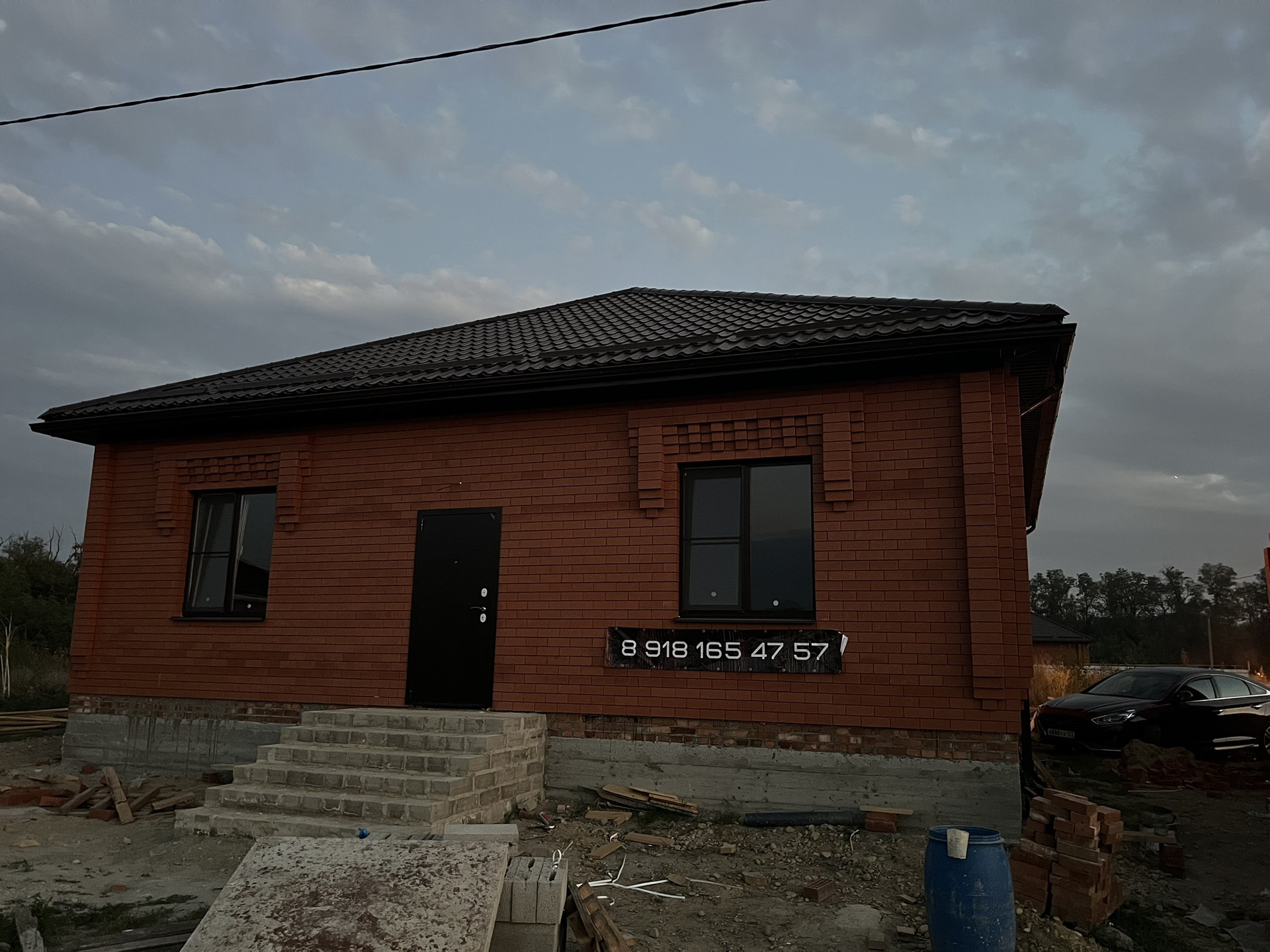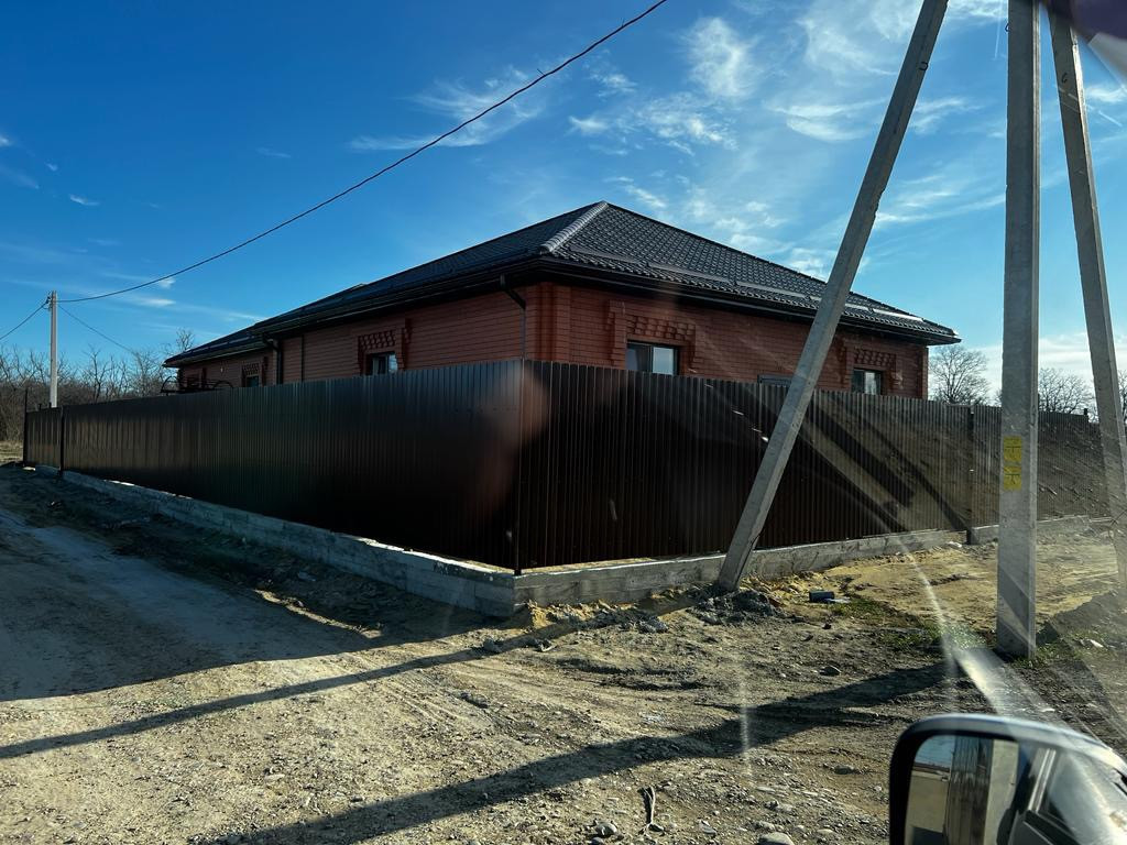 Двор отсыпан, забор полностью по кругу установлен , все коммуникации ,все остальное отвечу по телефону.