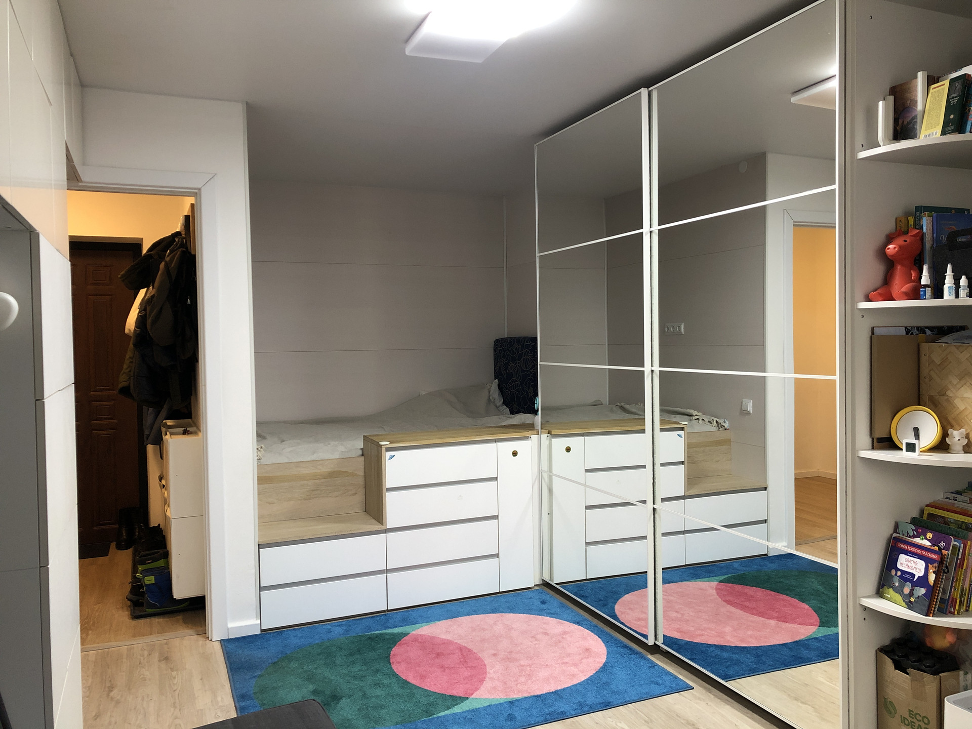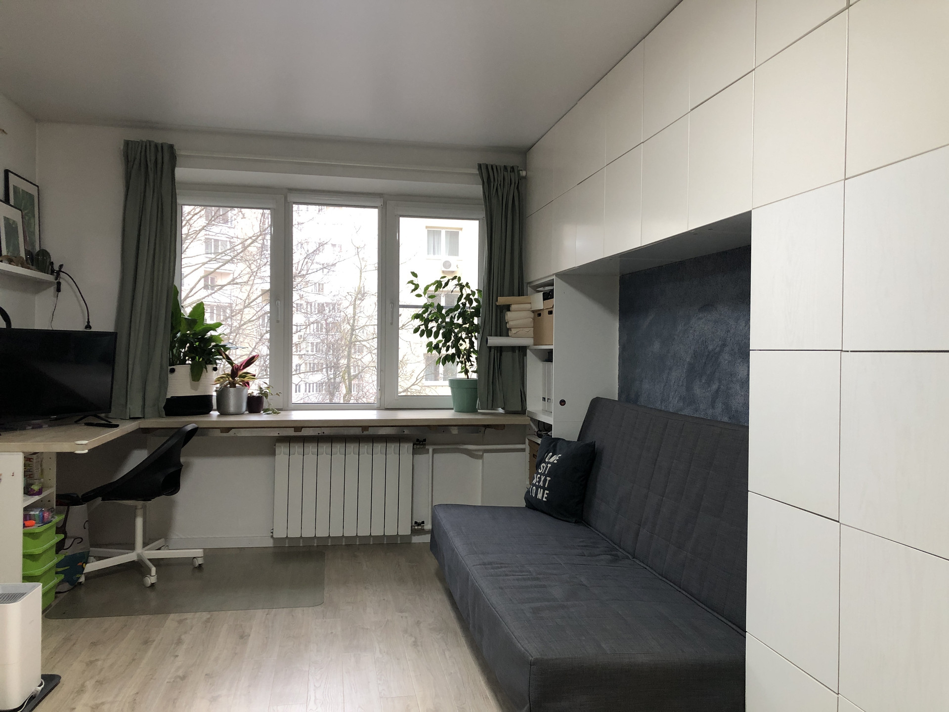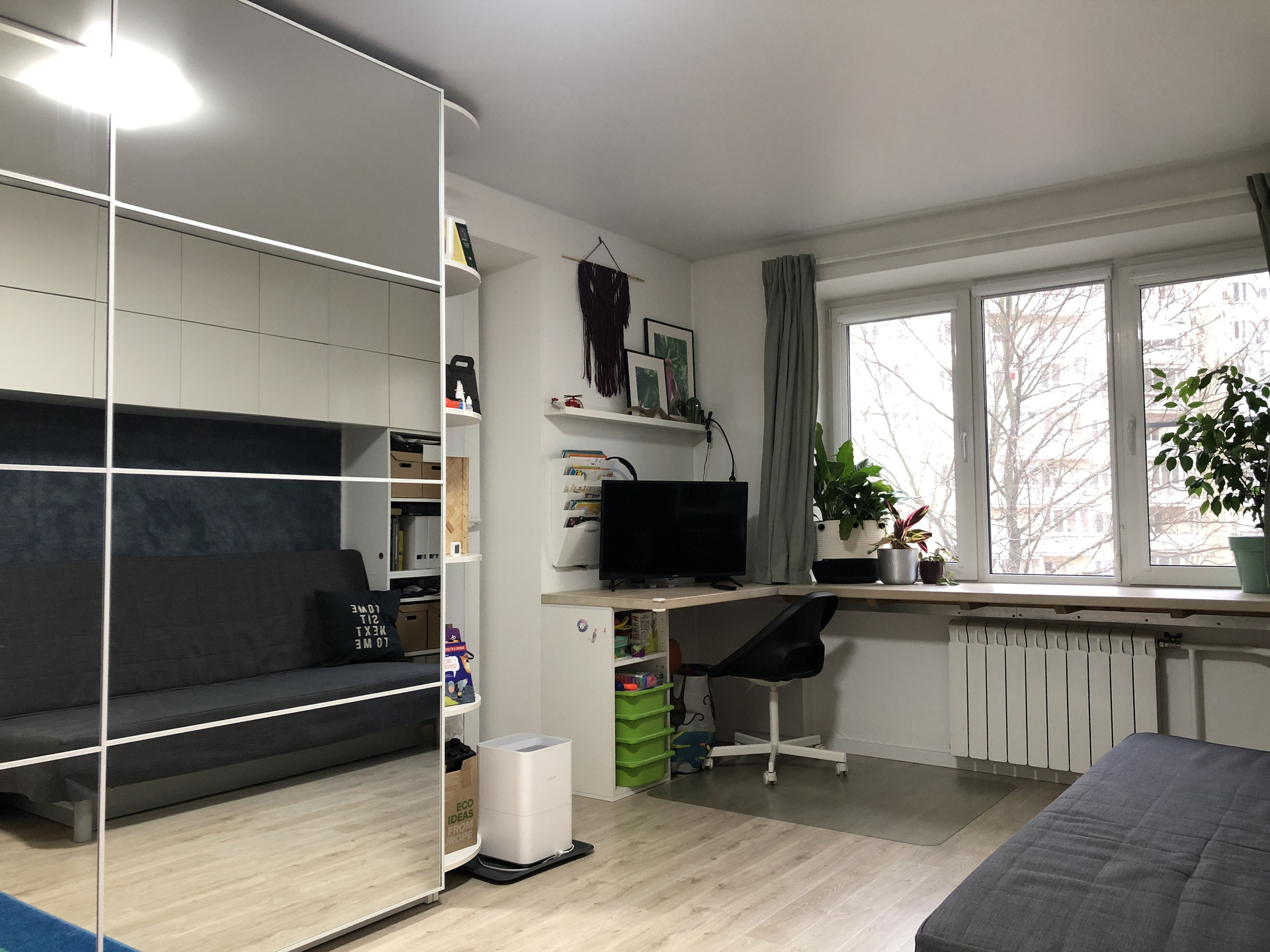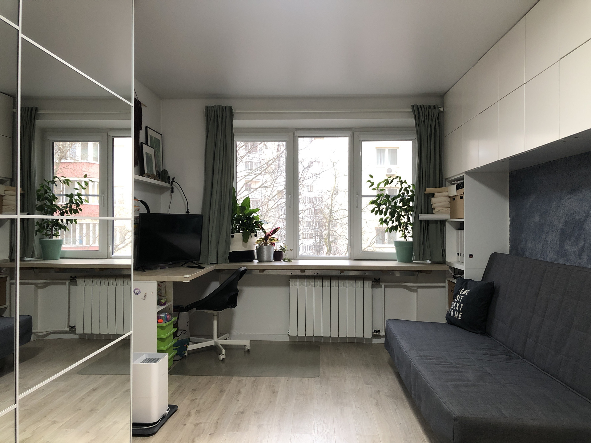 Квартира эргономичной планировки, теплая и светлая. Выполнен капитальный, очень стильный и красивый ремонт с использованием качественных материалов. Утепленная лоджия, может использоваться в качестве рабочего кабинета. Санузел совмещен. Установлены качественная современная мебель и техника.