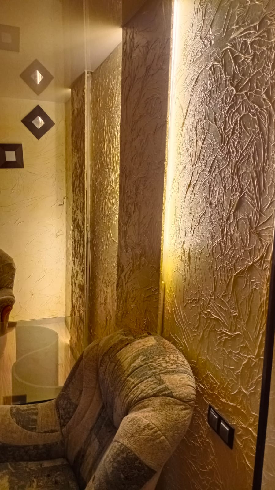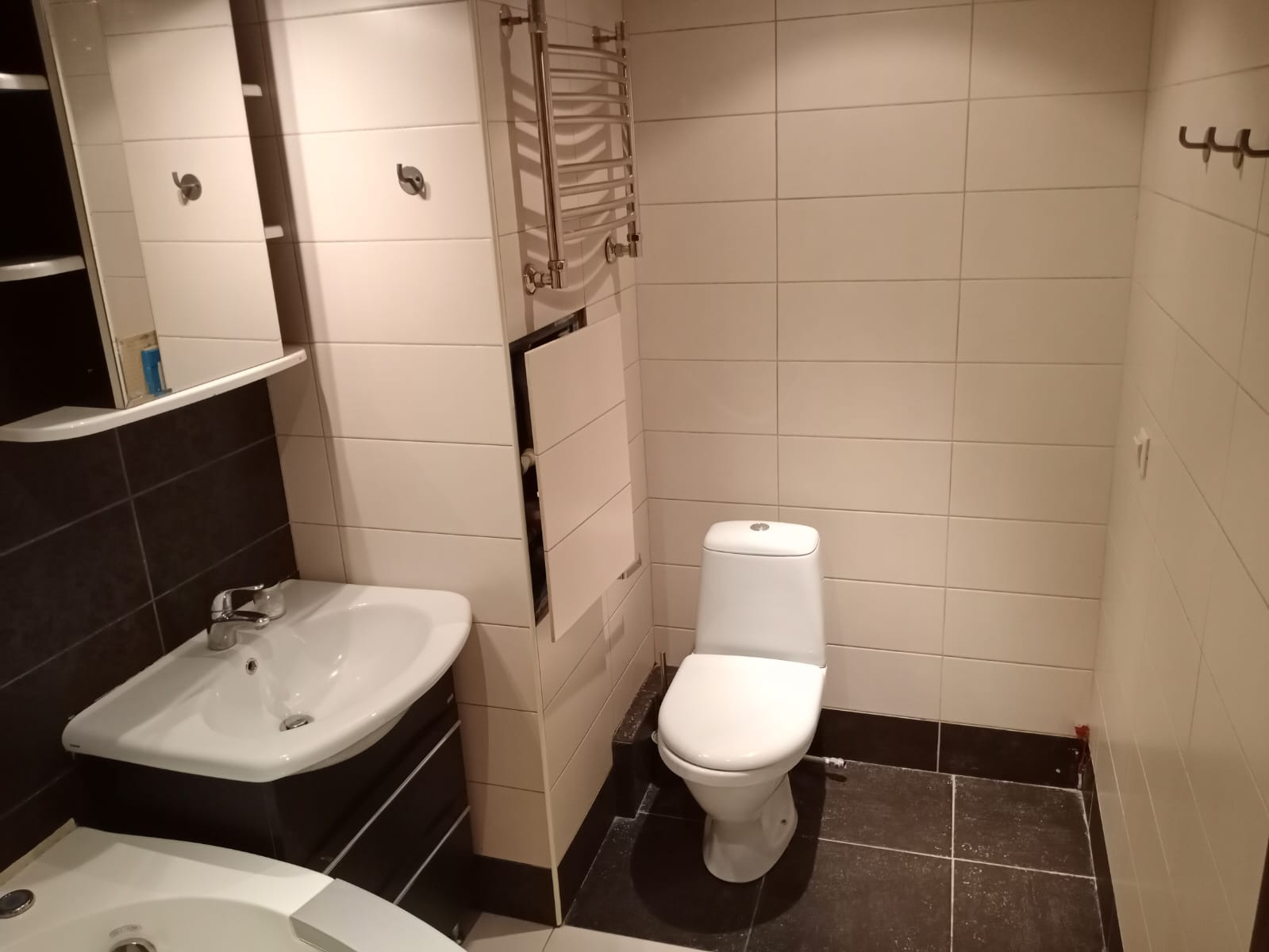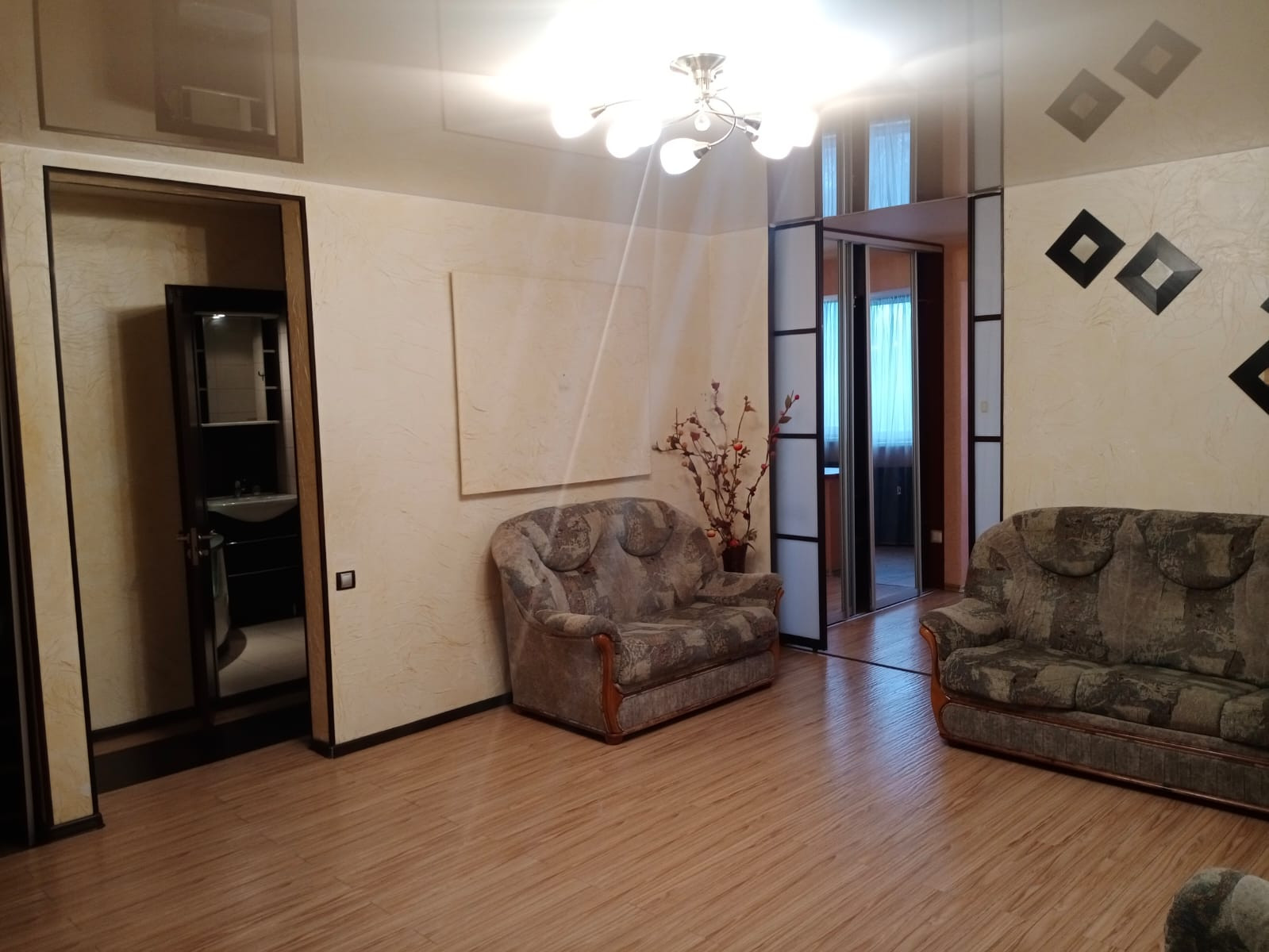 Точечное освещение по всей квартире. Кондиционер. Тёплый пол.