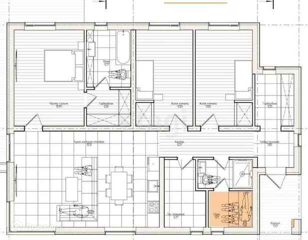 Санузел с возможностью монтажа сауны.