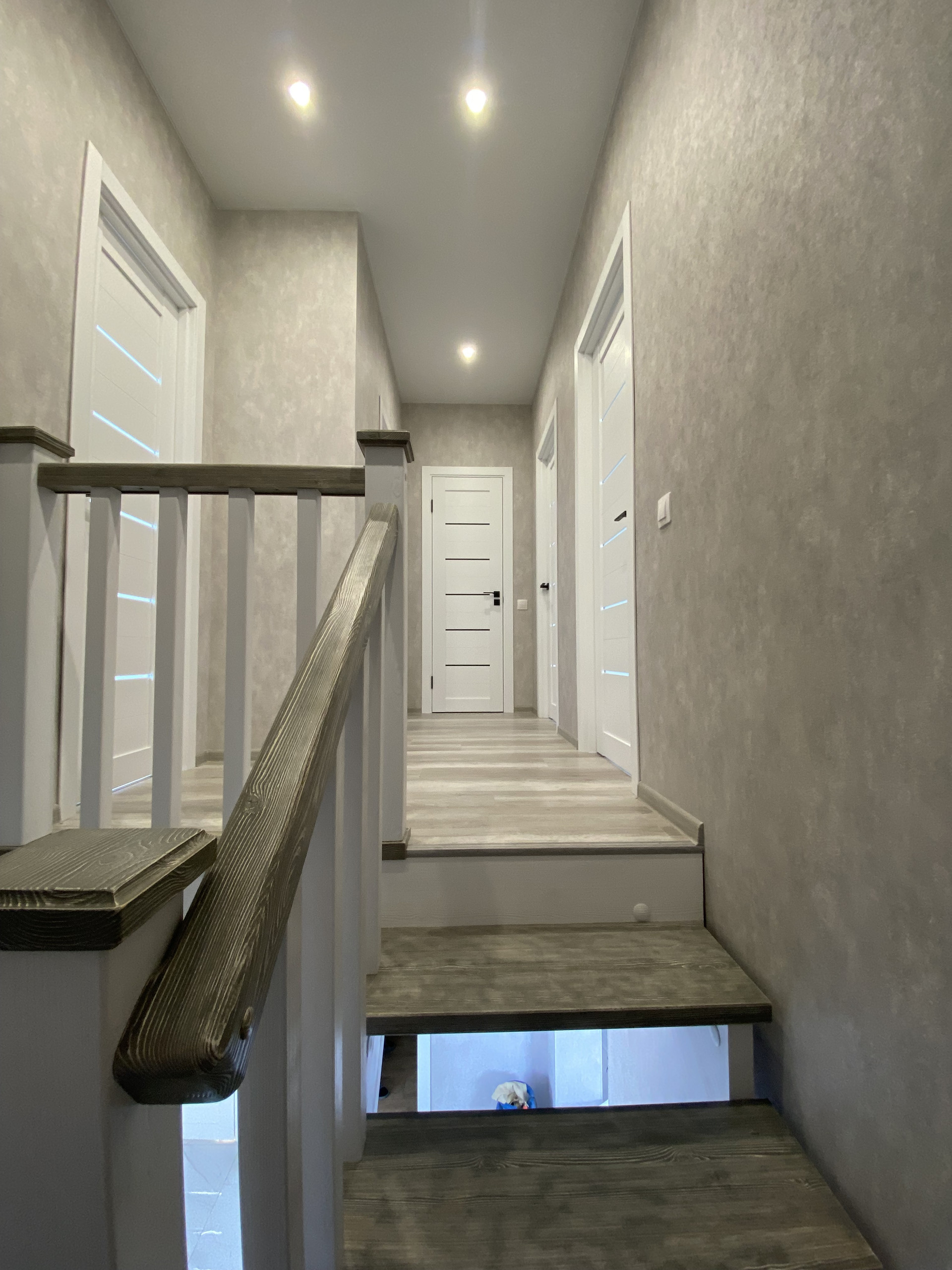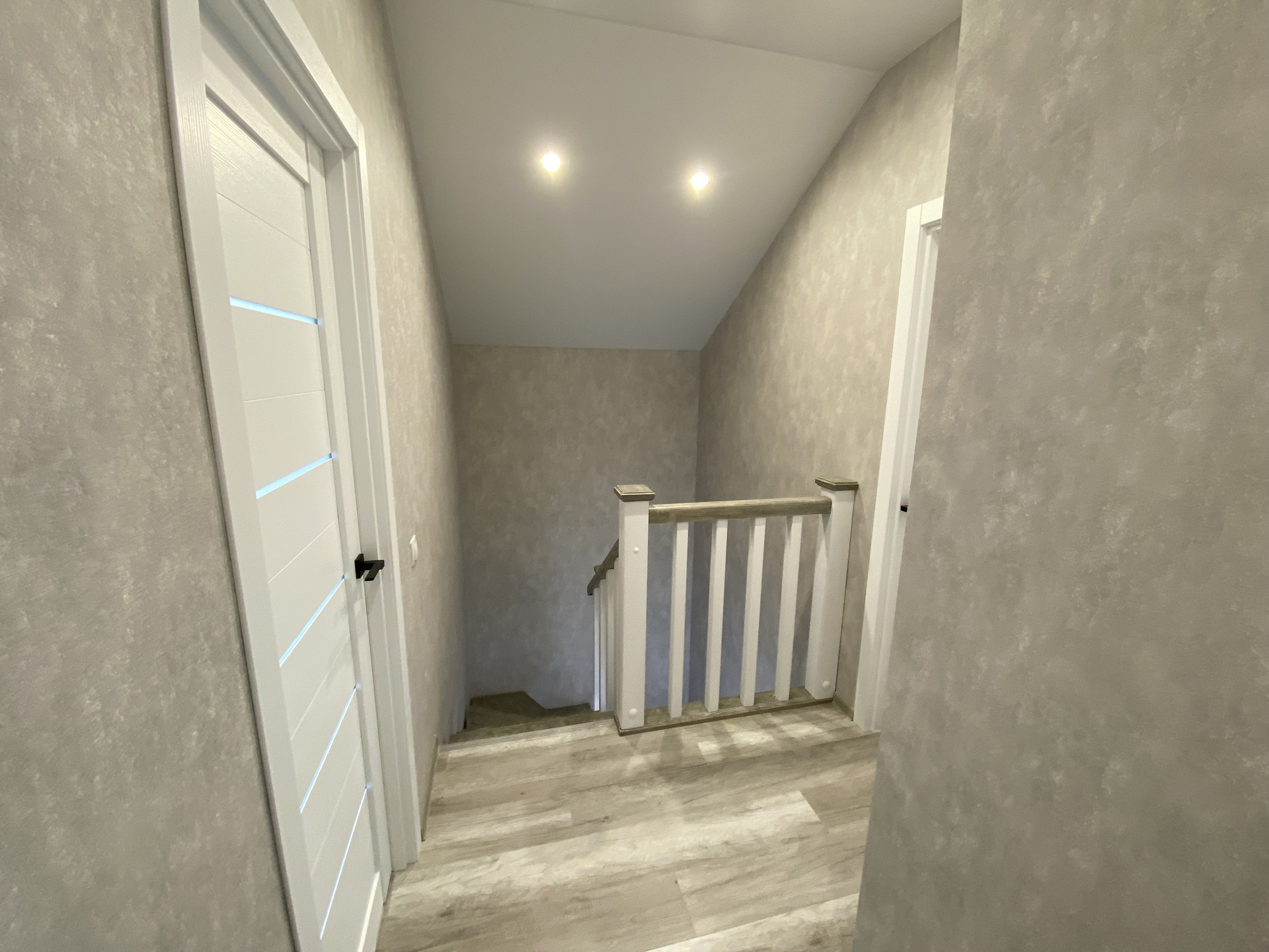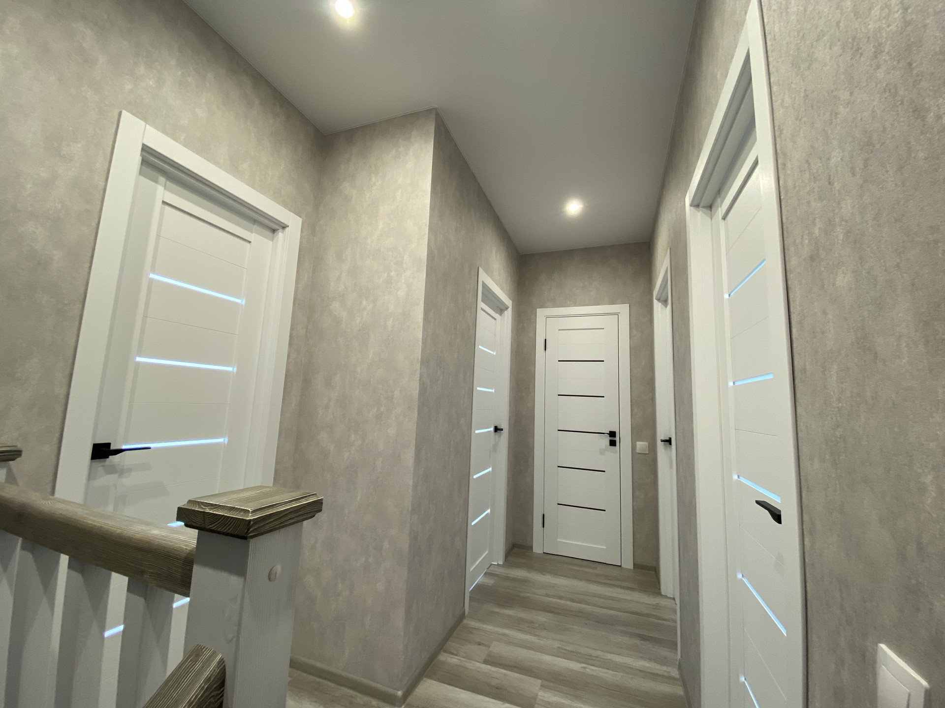 Отделка: потолок натяжной, первый этаж теплый пол в плитке, ламинат, электрика, сантехника, светильники- все фото сегодняшнего дня.