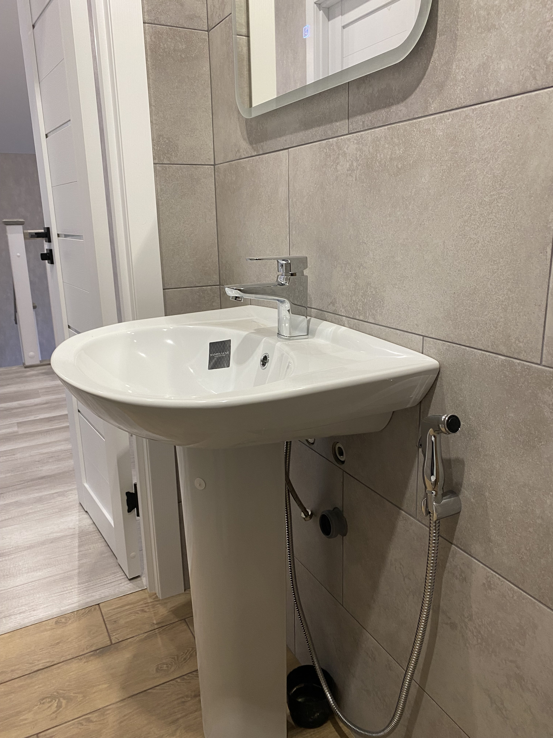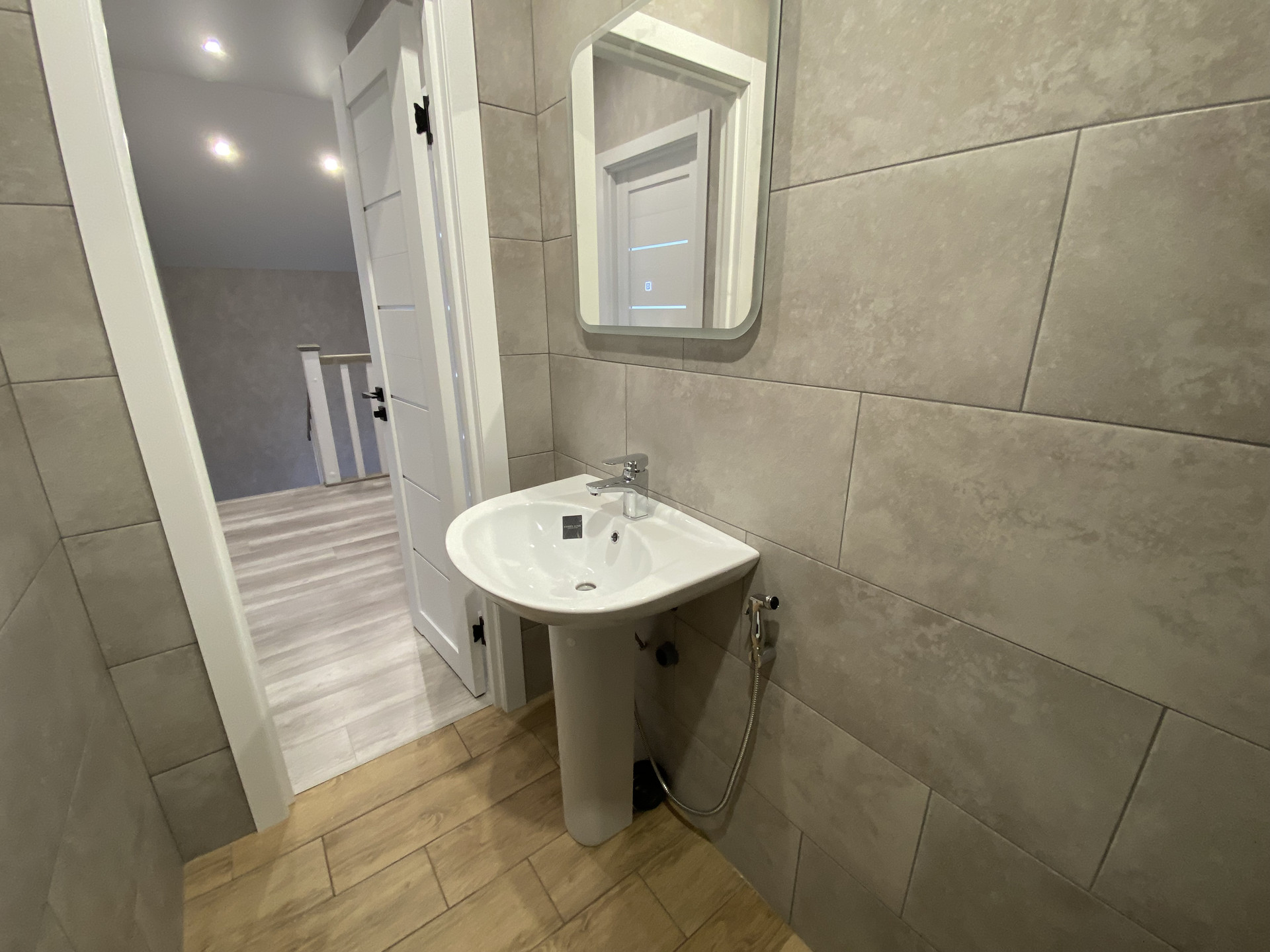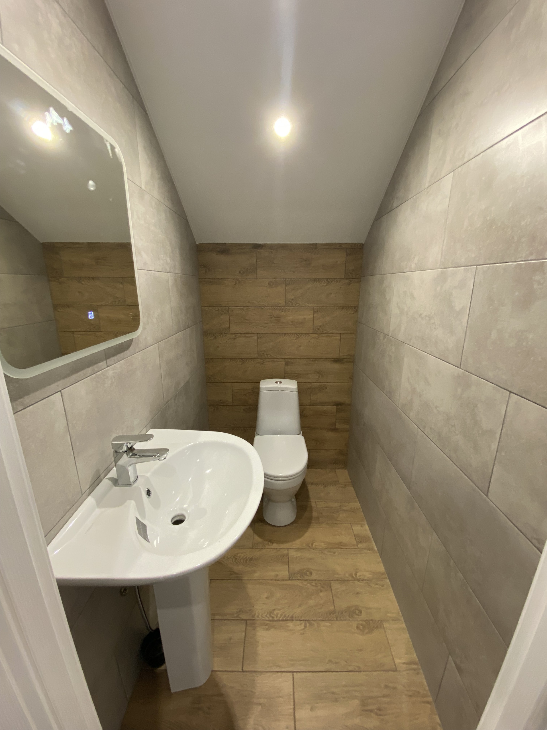 Отделка: потолок натяжной, первый этаж теплый пол в плитке, ламинат, электрика, сантехника, светильники- все фото сегодняшнего дня.