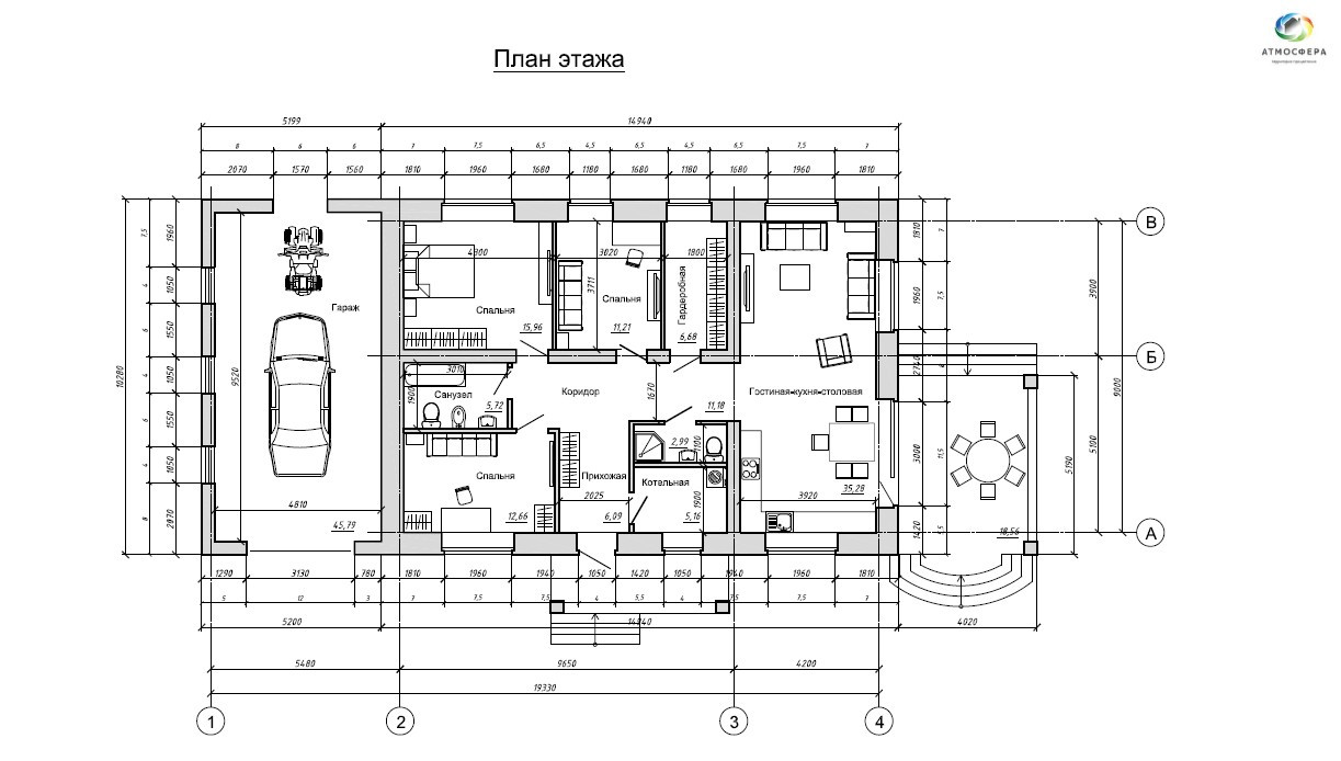Удобная планировка, включающая в себя просторную кухню-гостиную (площадью 35.28 кв. м.) с выходом на террасу, три изолированных спальни (площадью 15, 12 и 11 кв.м.), два раздельных санузла (площадью 5.72 и 3 кв.м), просторный холл, большую гардеробную и котельную.