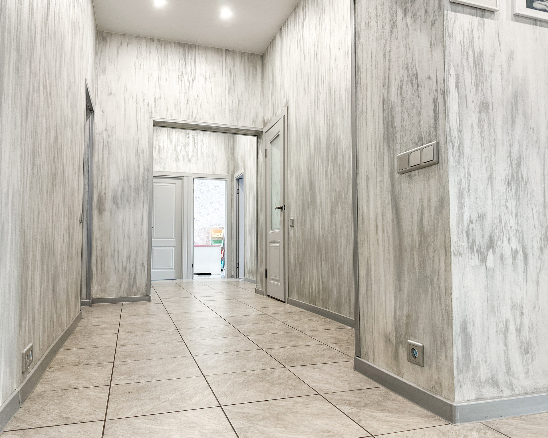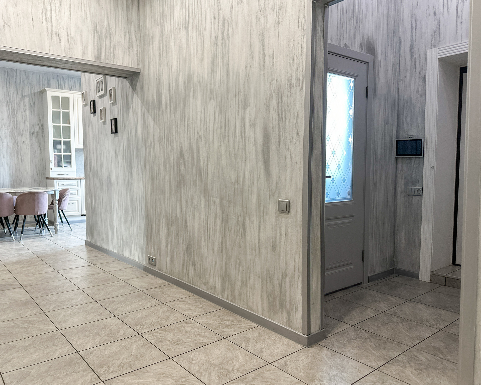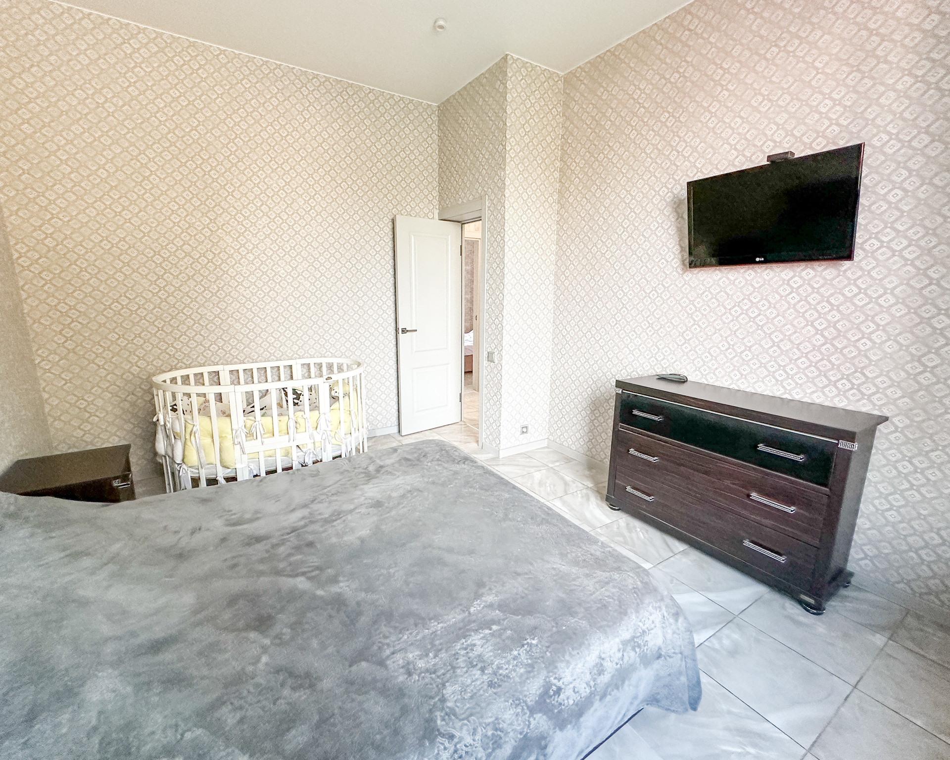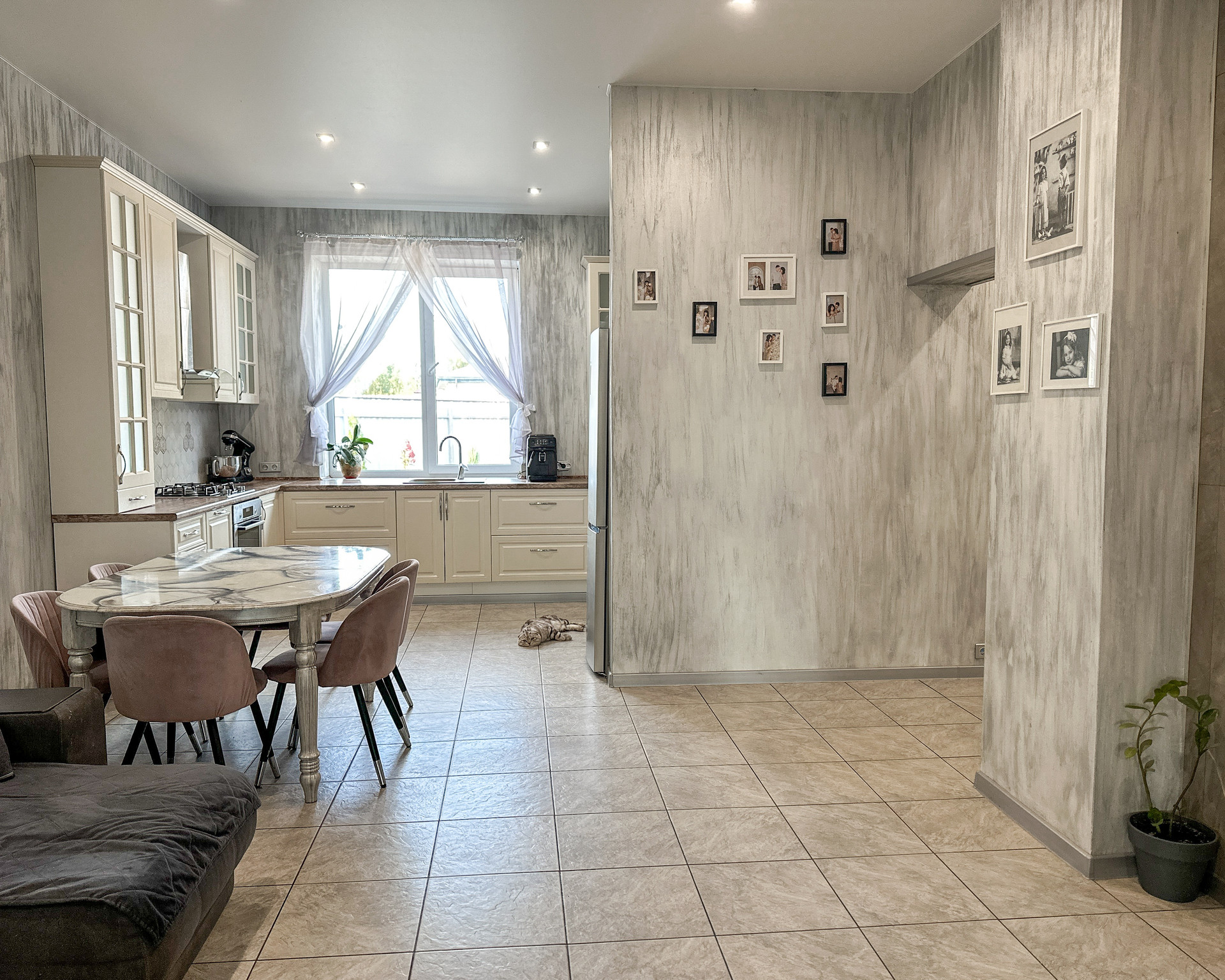 В доме три отдельные спальни, находятся в отдалении от основных помещение (гостиной, кухни, террасы -удобно, тихо), большая гостиная (27 квм) с выделенной зоной кухни (плюс 11 квм), в кухне кладовая, по всей площади дома теплый пол, плитка. Стены-дизайнерская штукатурка и обои. Ванная комната (6,5 квм), большой тепловой узел-прачечная (9 квм). Из него второй выход на веранду. Две гардеробные (6 и 3 квм), тамбур (4 квм) и холл (7 квм).