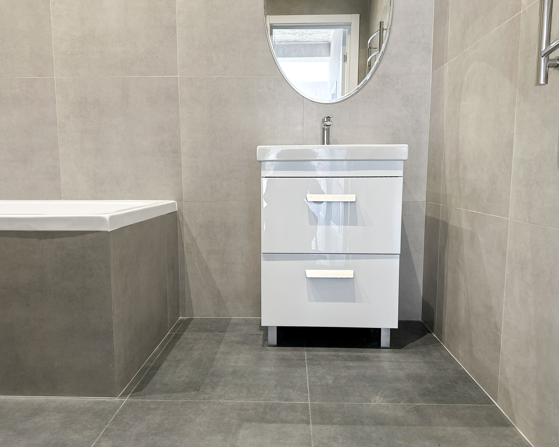 - ванна полностью оборудована сантехникой, пол и стены - керамогранит,