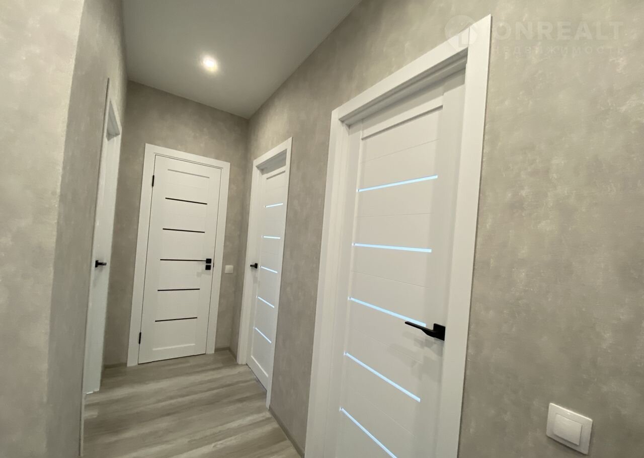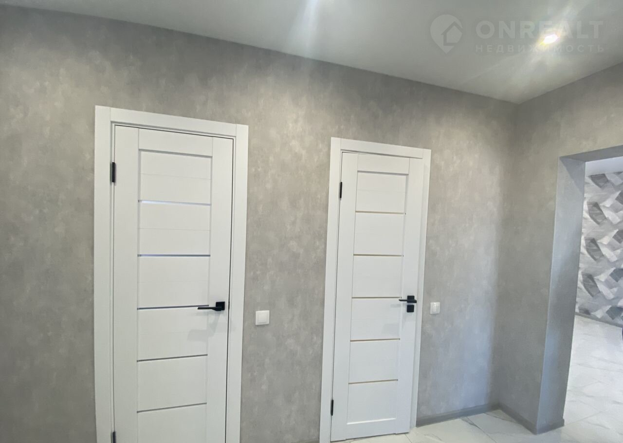 ОТДЕЛКА: натяжной потолок везде, электросветильники потолочные, сантехника, обои, межкомнатные белые двери, красивые ручки, входная дверь с терморазрывом, плитка на полу, ламинат.