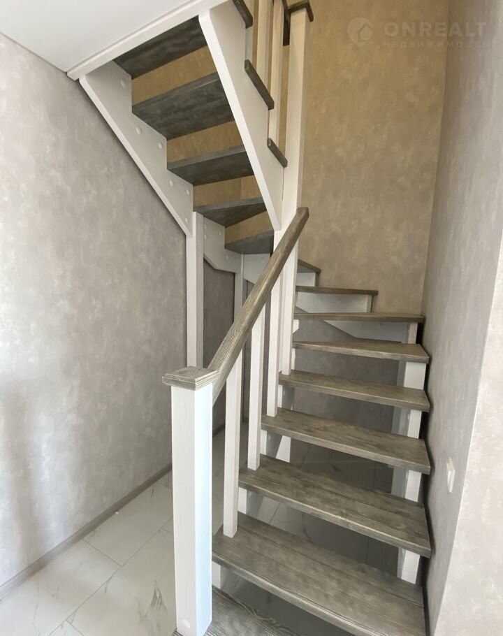 ЛЕСТНИЦА: деревянная, авторское исполнение, белая, с серыми брашированными ступенями